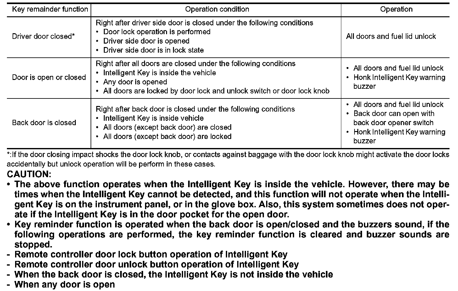 Key reminder is the function that prevents the key from being left in the vehicle.