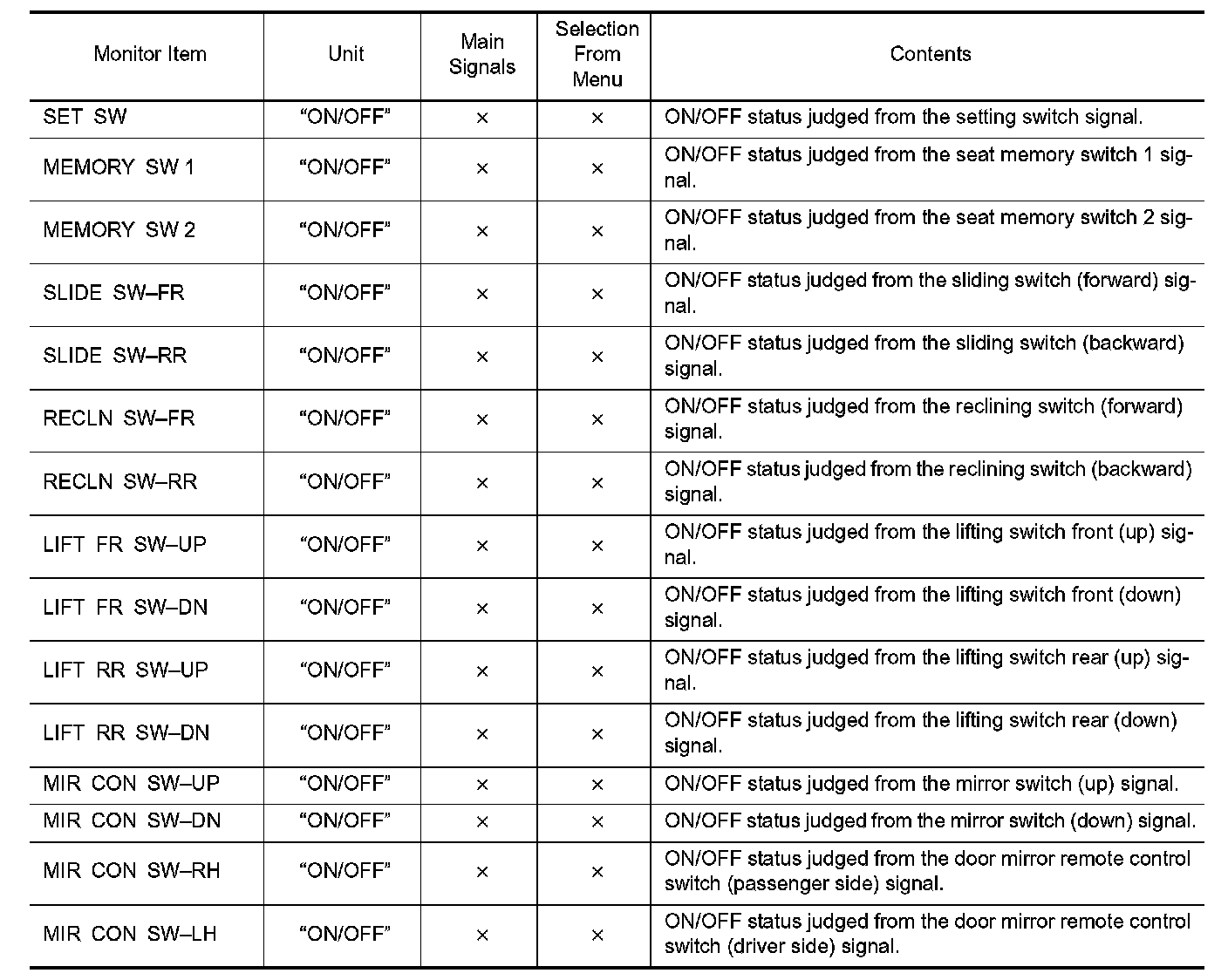 DIAGNOSIS SYSTEM (DRIVER SEAT CONTROL UNIT)