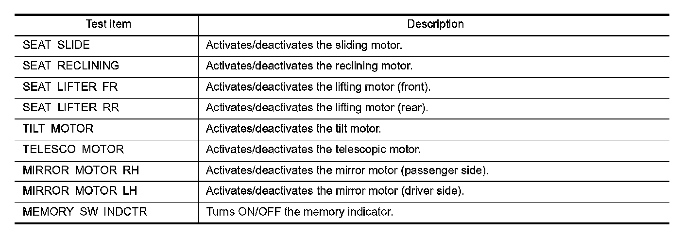 Diagnosis System (Driver Seat Control Unit)