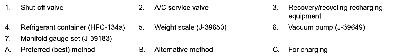 1. Connect recovery/recycling recharging equipment or manifold gauge set (SST: J-39183).