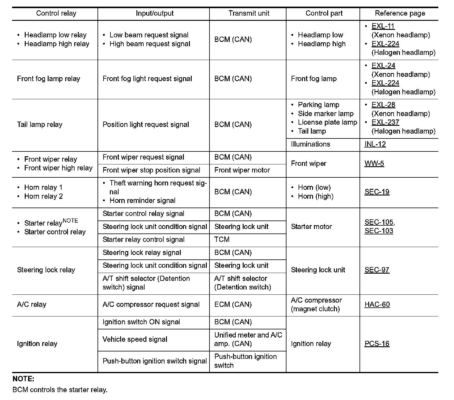 IPDM E/R activates the internal control circuit to perform the relay ON-OFF control according to the input signals from various sensors and the request signals received from control units via CAN communication.