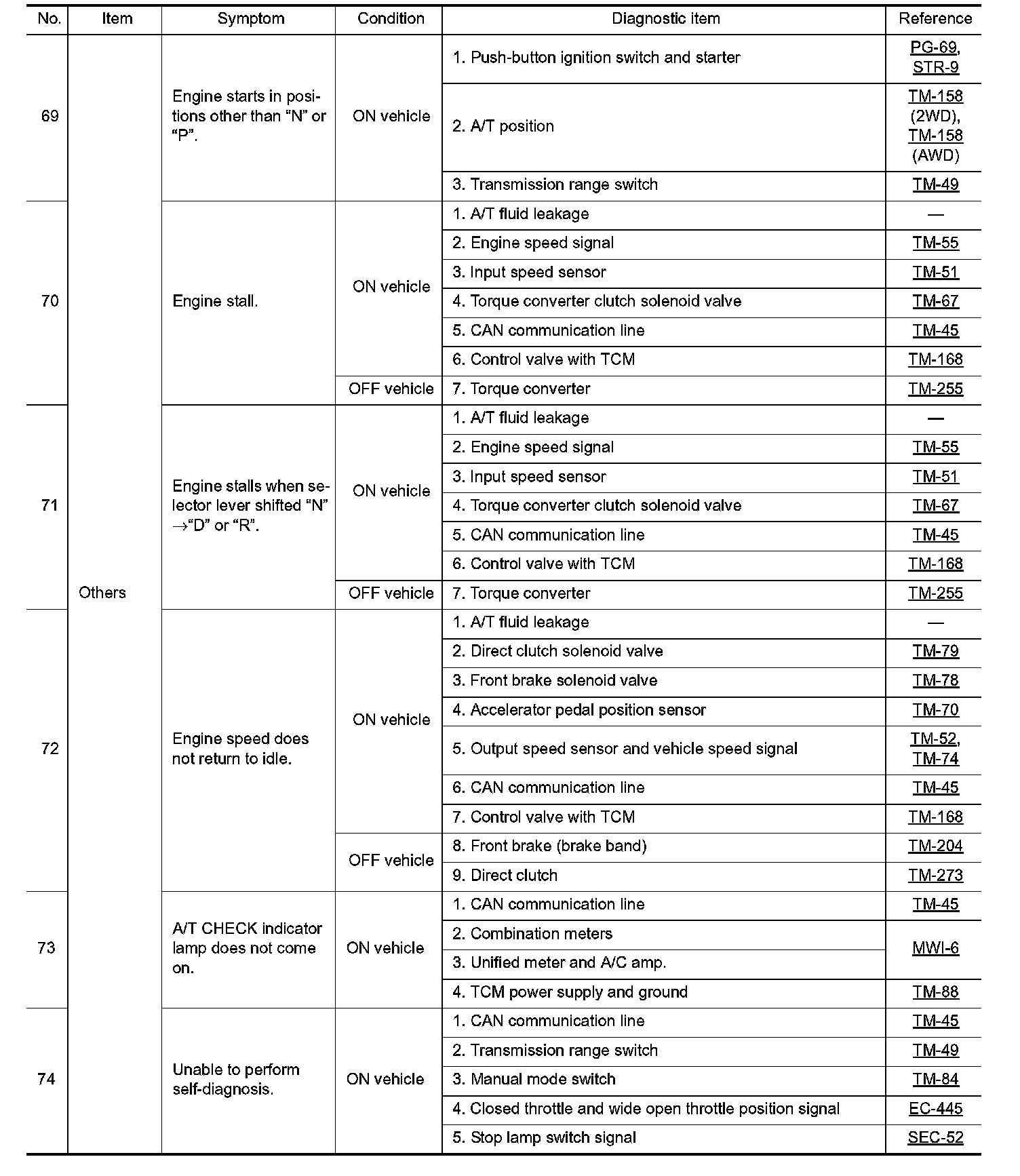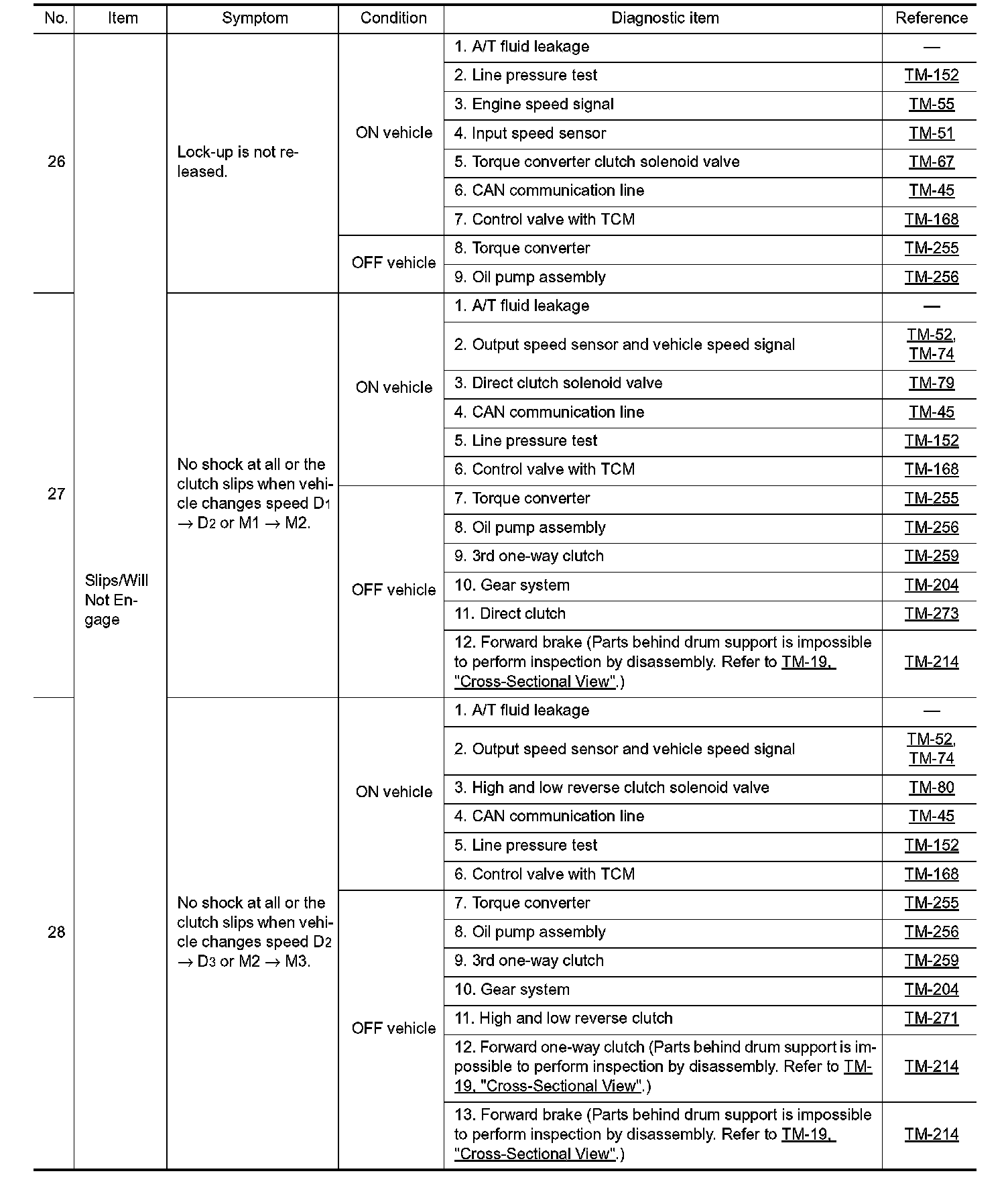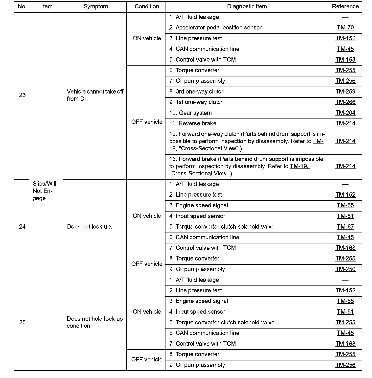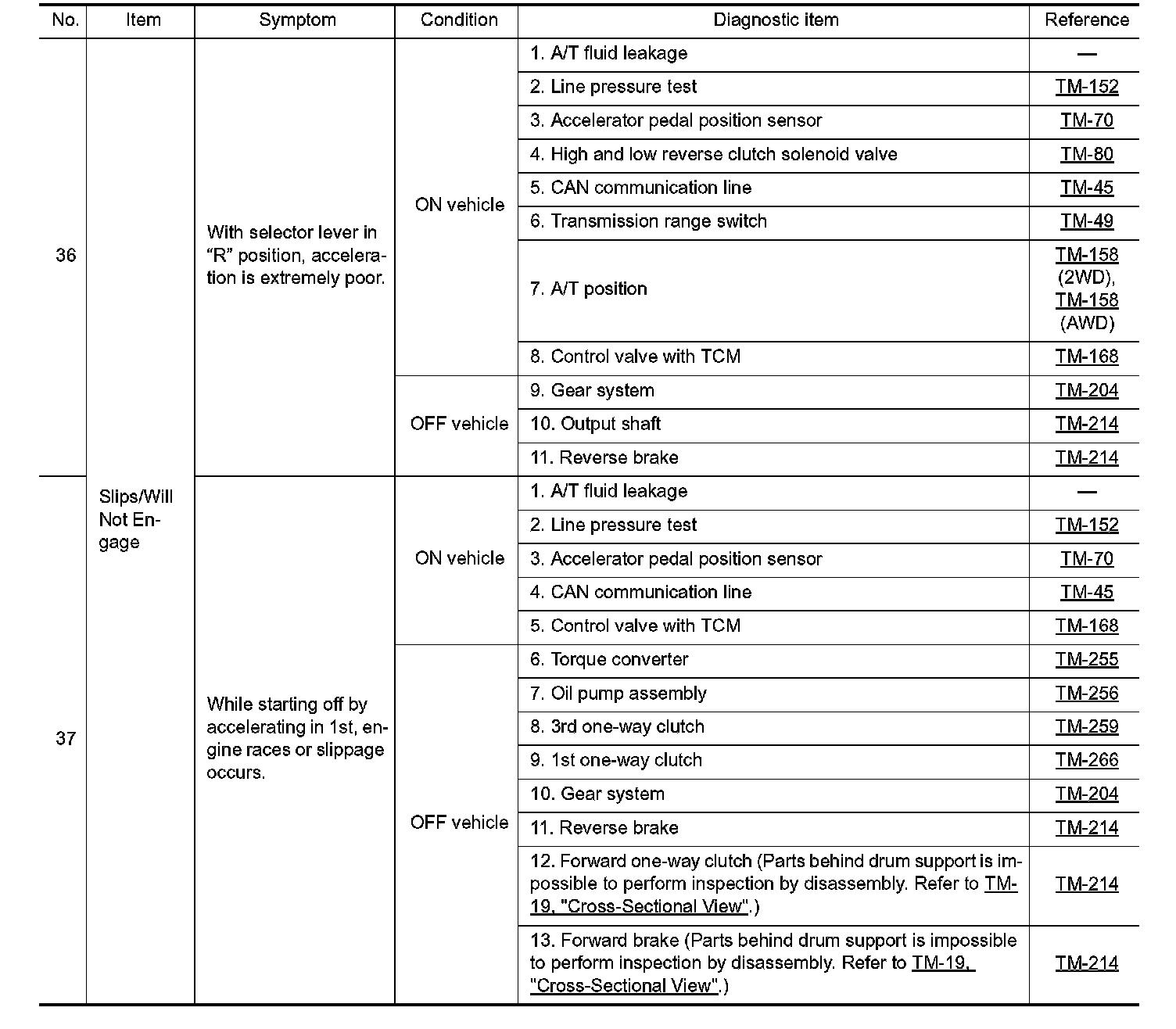 SYSTEM SYMPTOMSymptom Table The diagnostics item numbers show the sequence for inspection. Inspect in order from item 1.