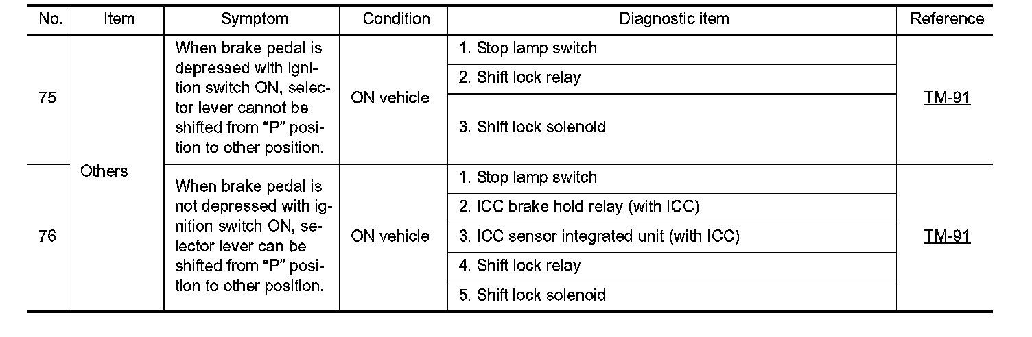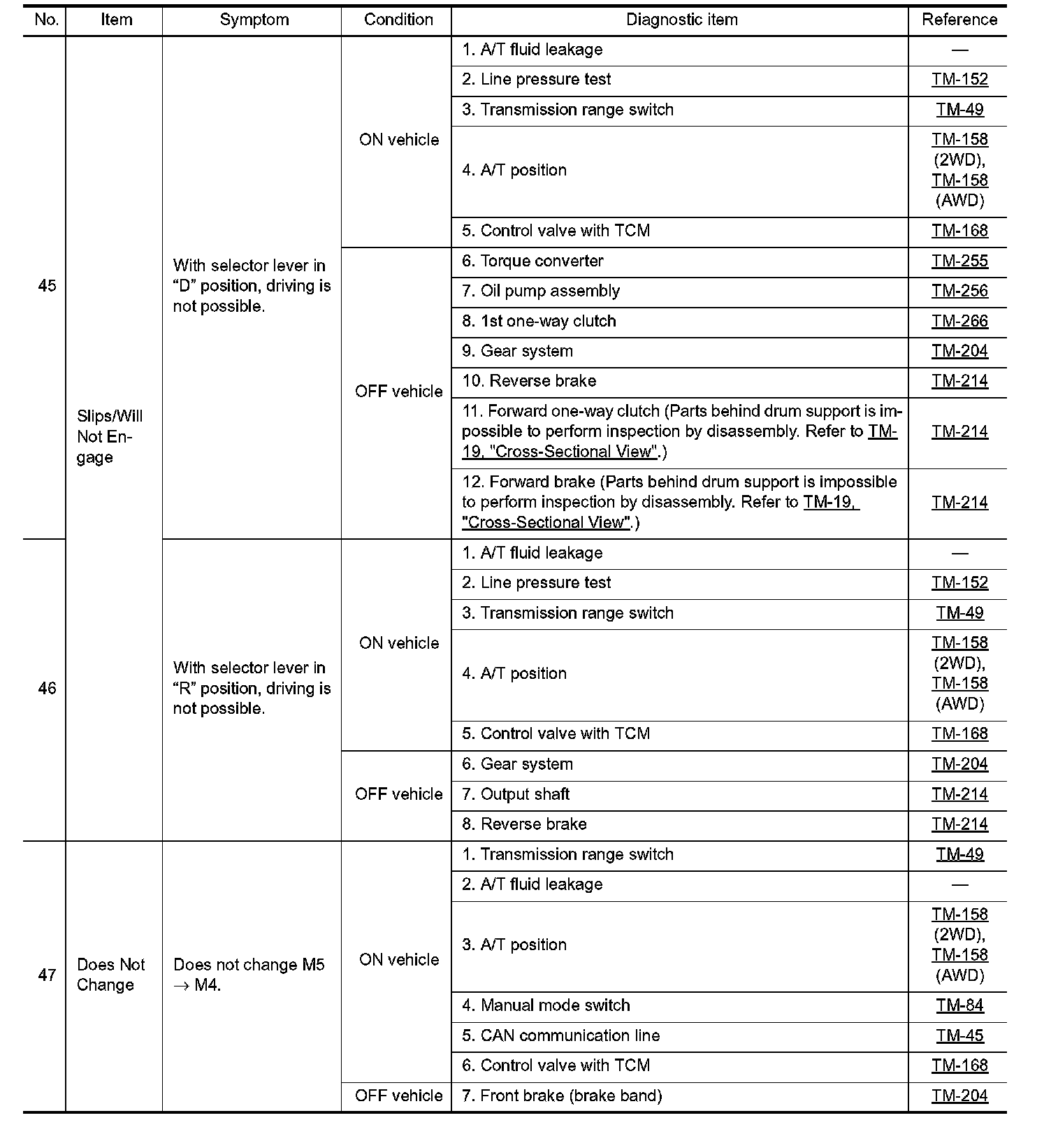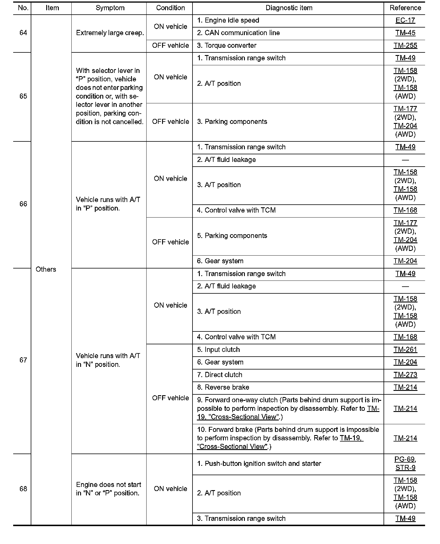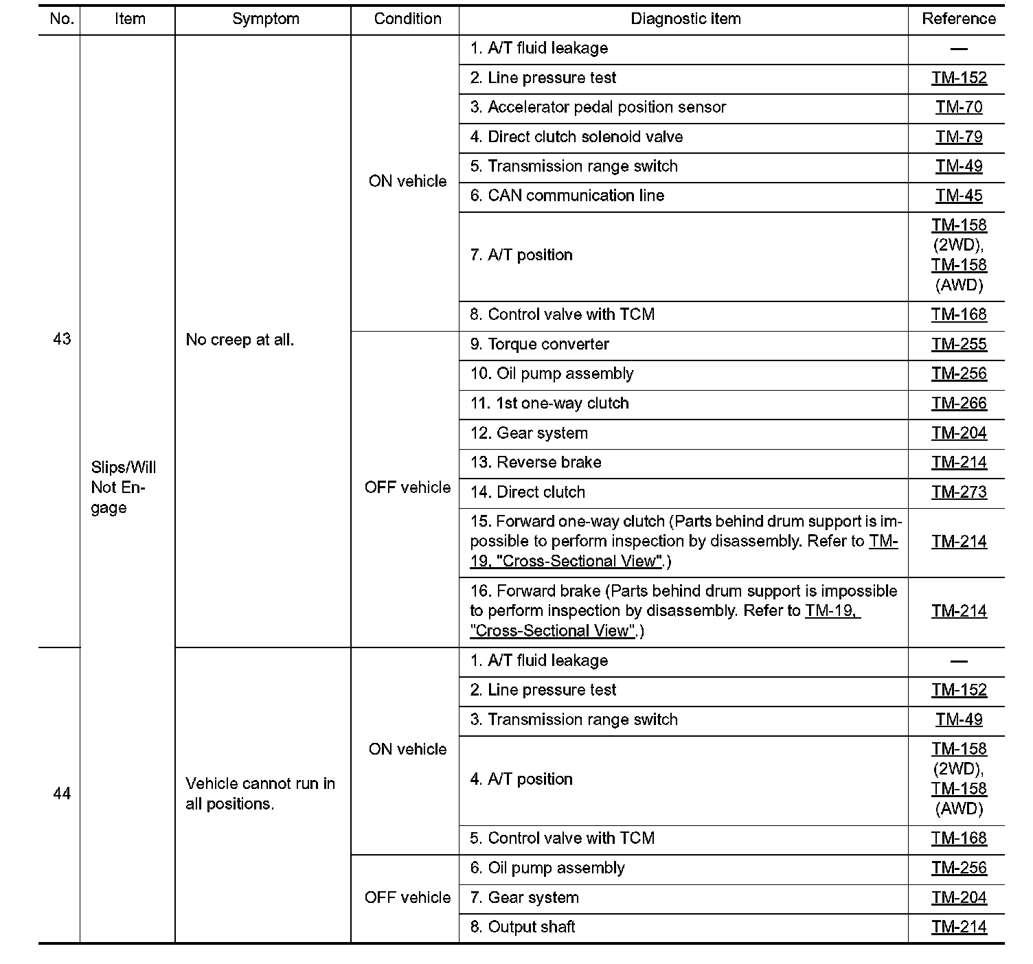 SYSTEM SYMPTOMSymptom Table The diagnostics item numbers show the sequence for inspection. Inspect in order from item 1.