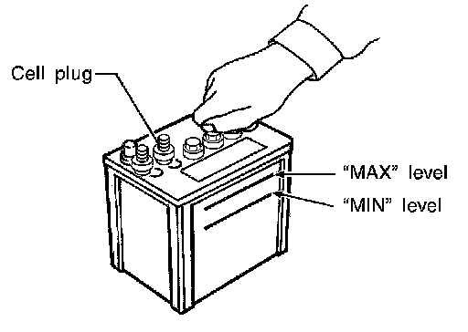 - Never add distilled water through the hole used to check specific gravity.