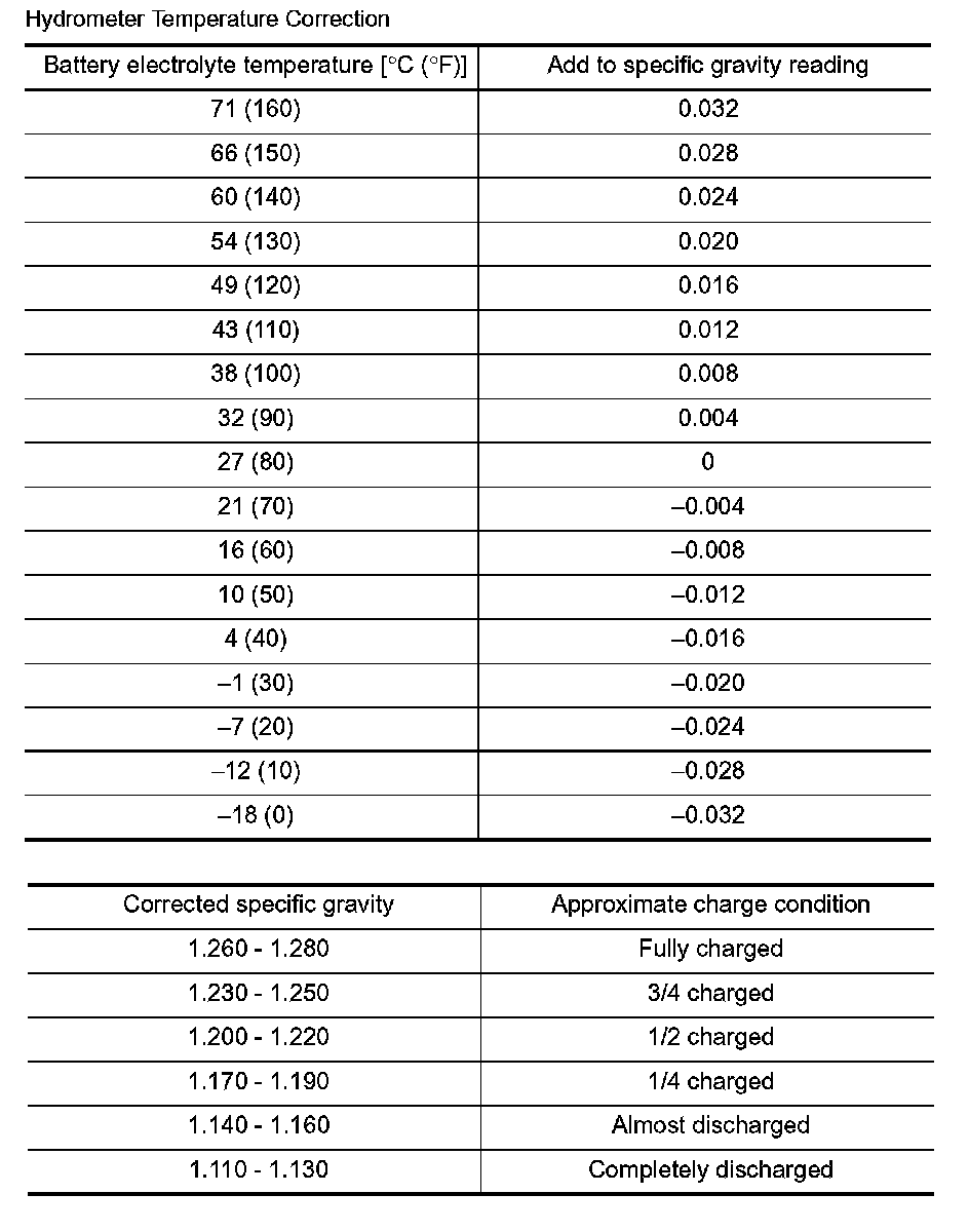 2. Use the chart below to correct your hydrometer reading according to electrolyte temperature.