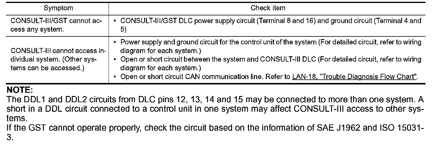 If the CONSULT-III/GST cannot diagnose the system properly, check the following items.