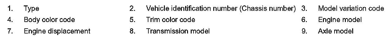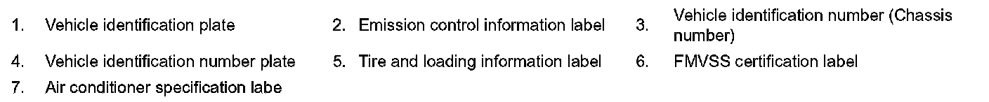 VEHICLE IDENTIFICATION NUMBER ARRANGEMENT