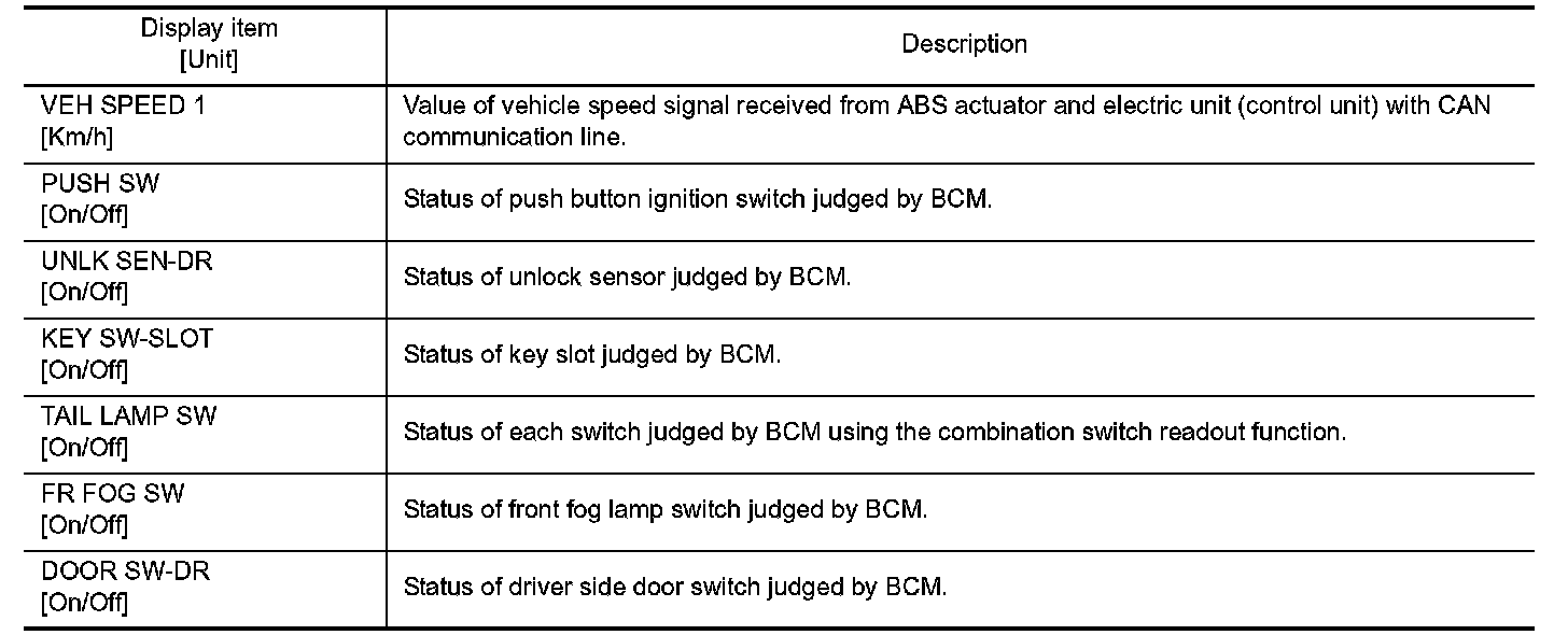 CONSULT-III APPLICATION ITEMS