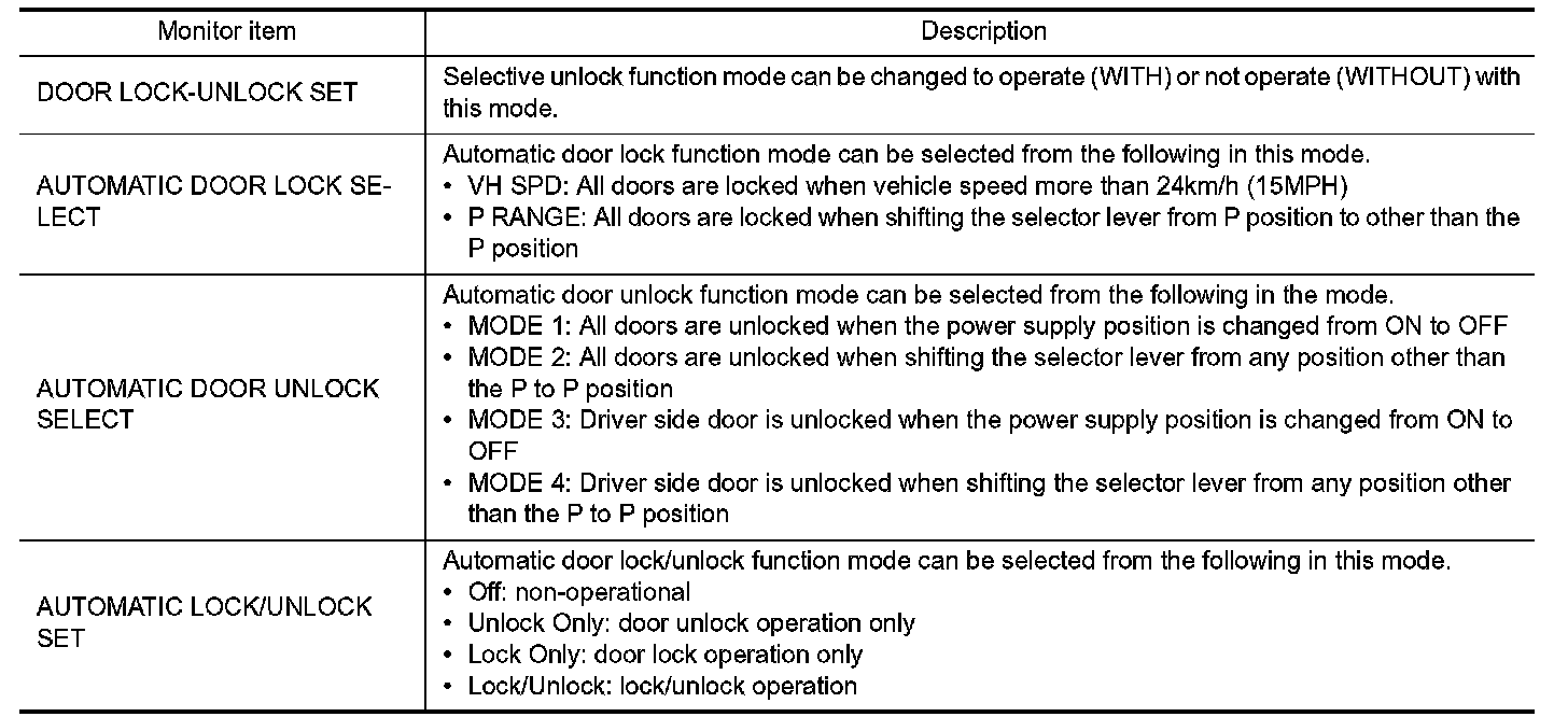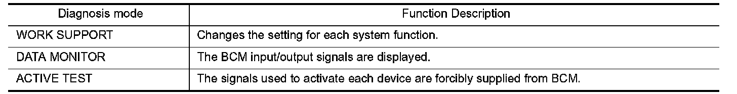 CONSULT-III performs the following functions via CAN communication with BCM.