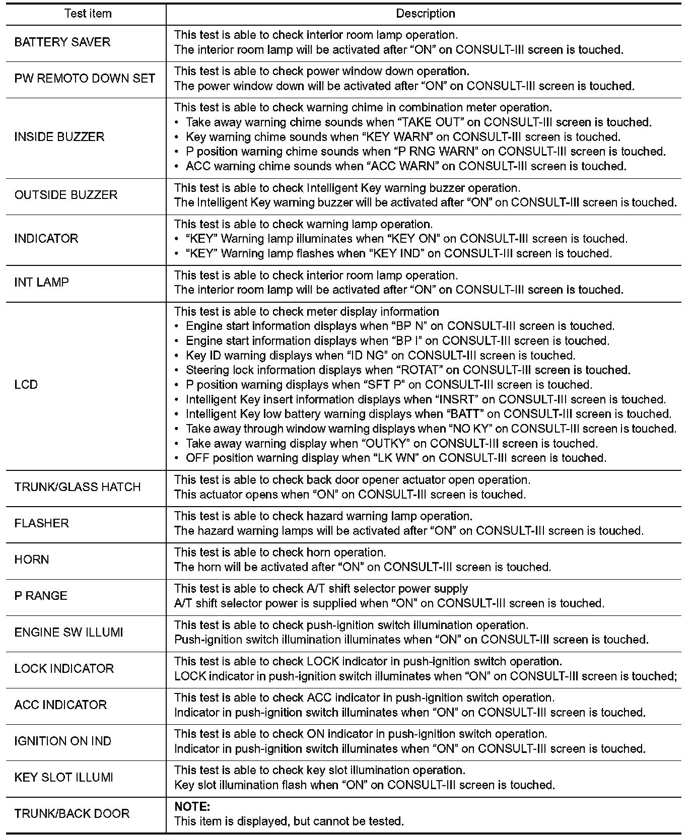 INTELLIGENT KEY : CONSULT-III Function (