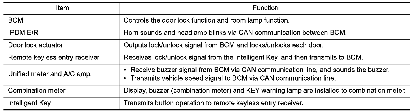 REMOTE KEYLESS ENTRY FUNCTION : Component Description