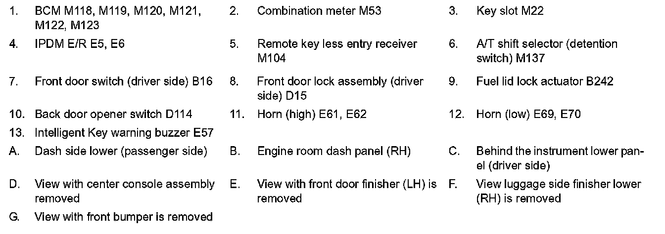 KEY REMINDER FUNCTION : Component Parts Location