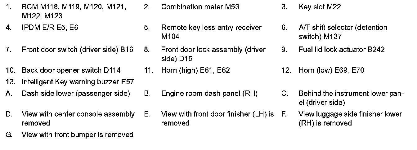 REMOTE KEYLESS ENTRY FUNCTION : Component Parts Location