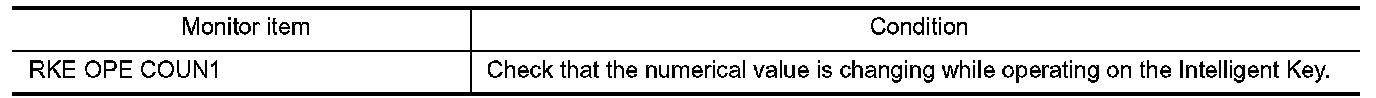 Check remote keyless entry receiver ("RKE OPE COUN1") in Data Monitor mode with CONSULT-III.