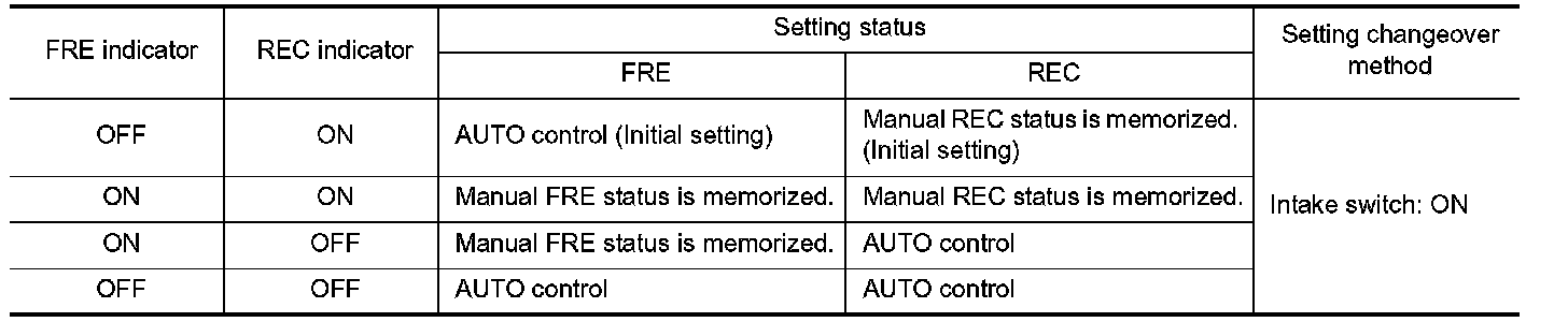 WITHOUT LEFT AND RIGHT VENTILATION TEMPERATURE SEPARATELY CONTROL SYSTEM : Inlet Port Memory Function