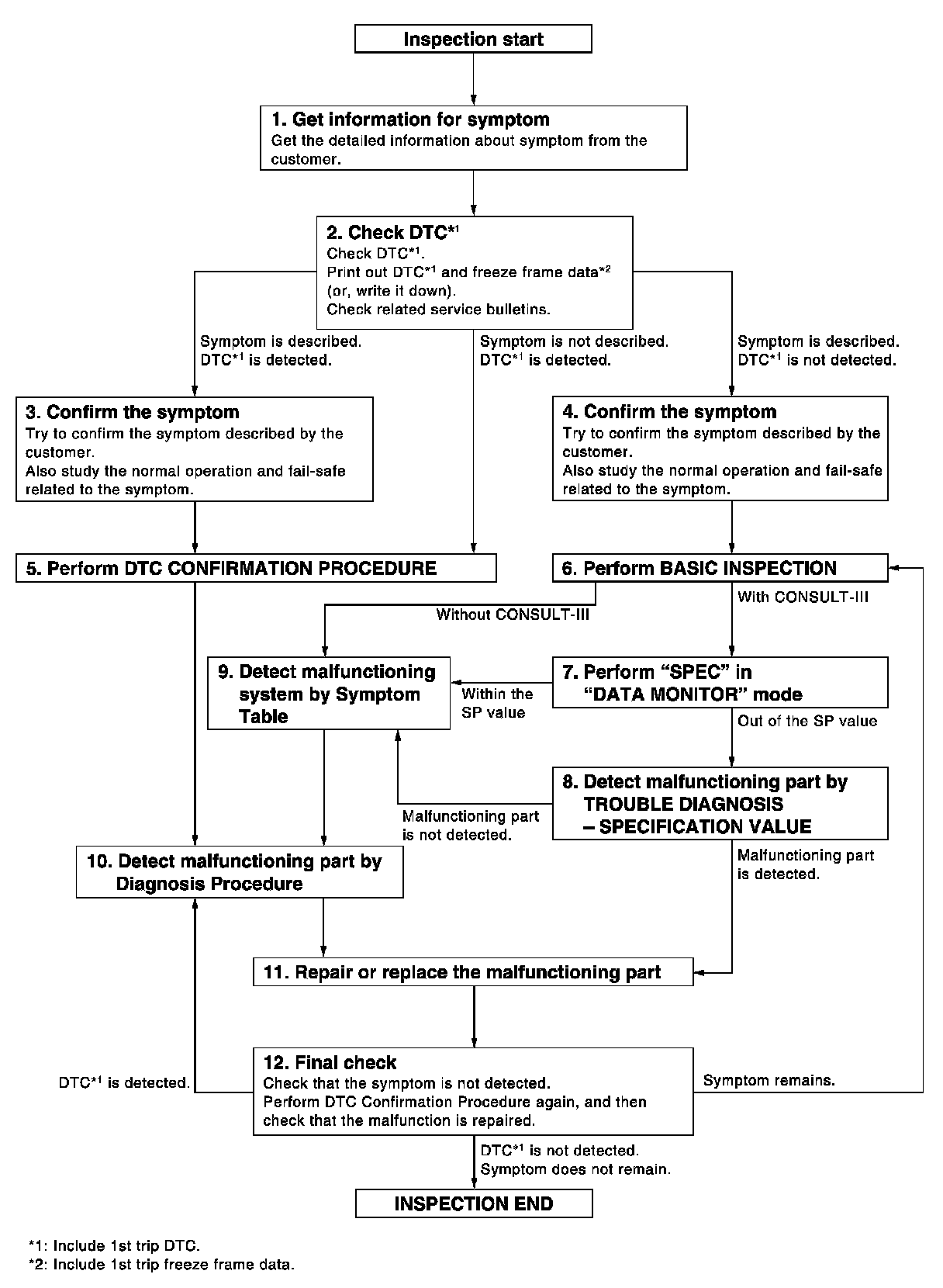 - Study the relationship between the cause detected by DTC and the symptom described by the customer.