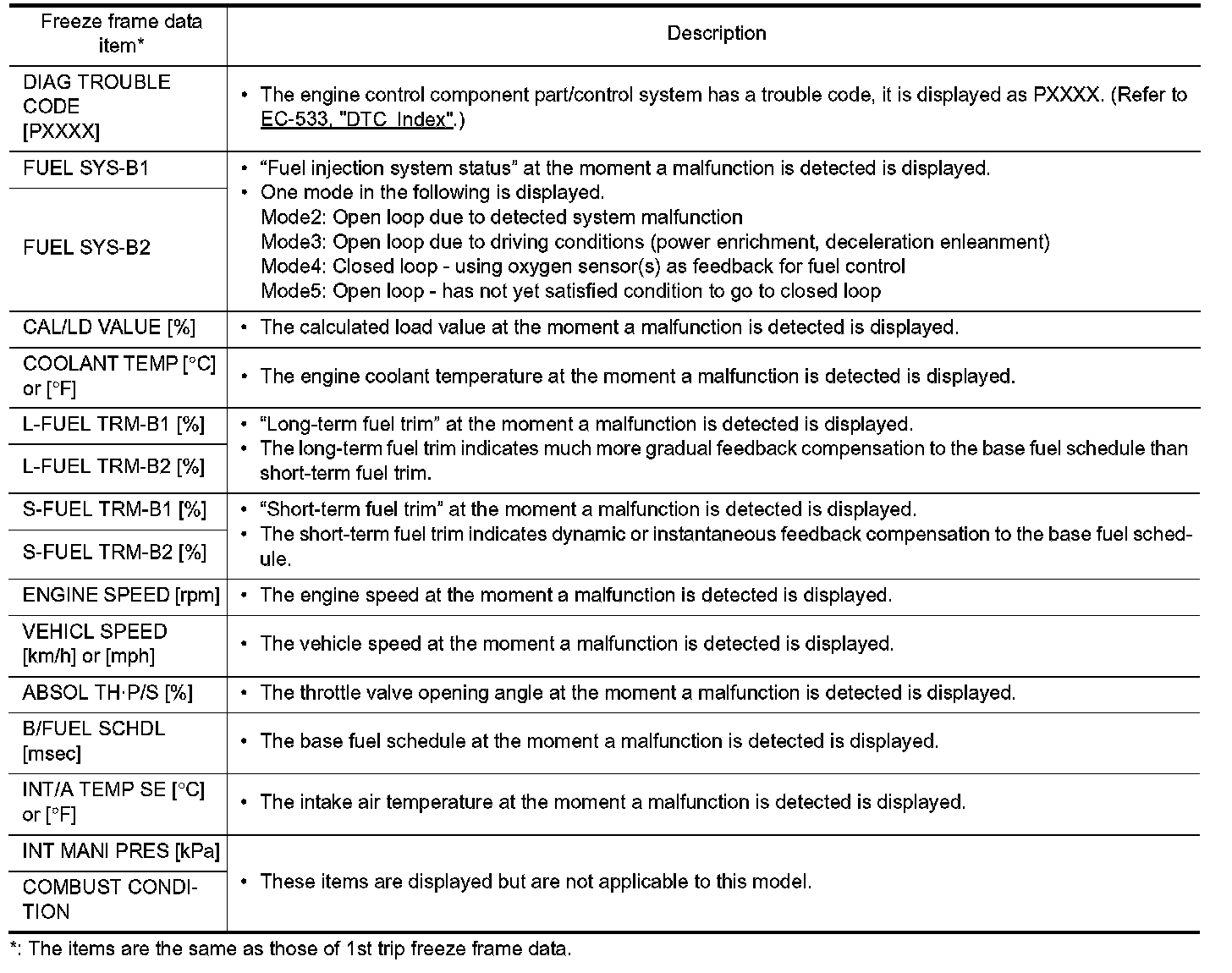 Freeze Frame Data and 1st Trip Freeze Frame Data