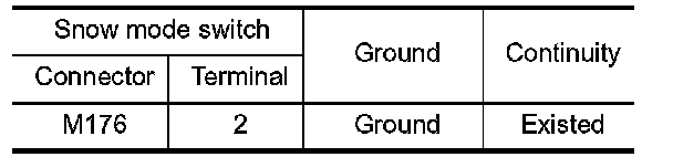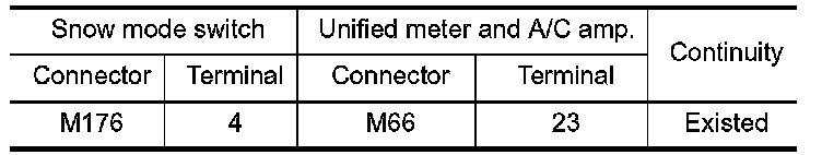 - Harness for open or short between snow mode switch and "unified meter and A/C amp."
