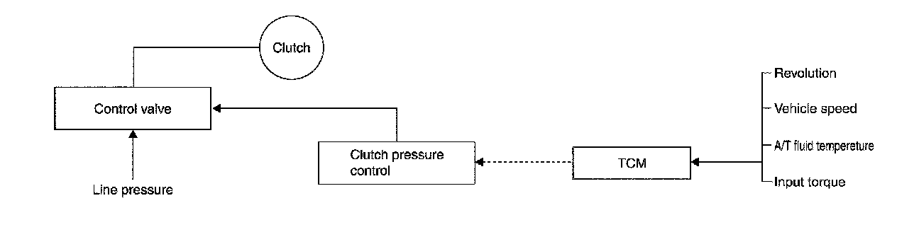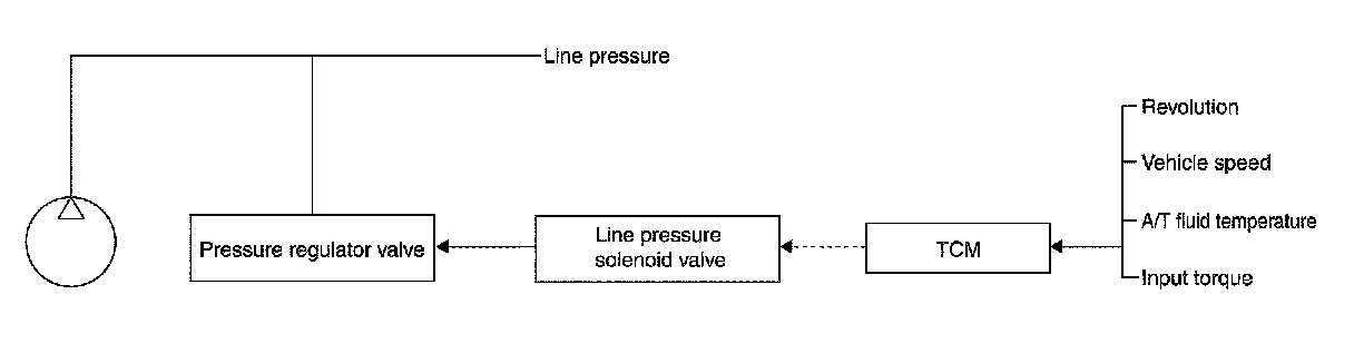 - When an input torque signal equivalent to the engine drive force is transmitted from the ECM to the TCM, the TCM controls the line pressure solenoid valve.