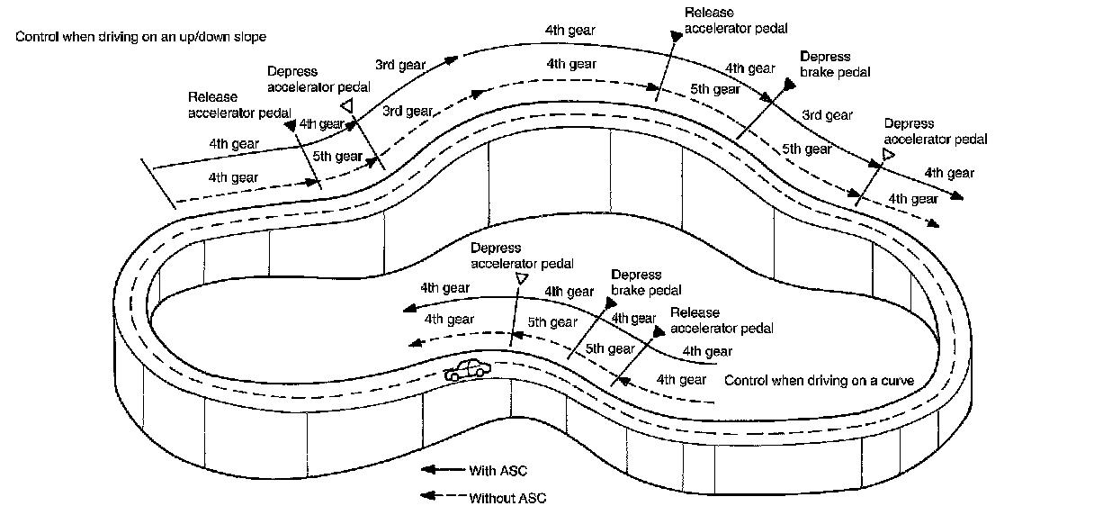 ASC automatically shifts or hold at the 2GR, 3GR or 4GR on certain roads (up/down slope and curve) and driving condition.