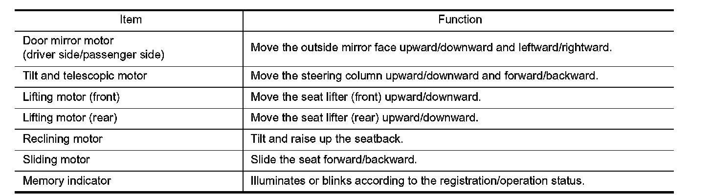 MEMORY FUNCTION : Component Description