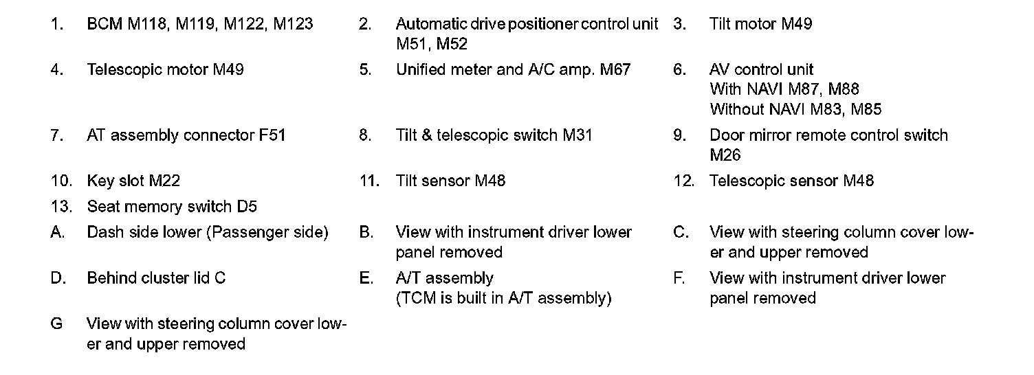 AUTOMATIC DRIVE POSITIONER SYSTEM : Component Parts Location
