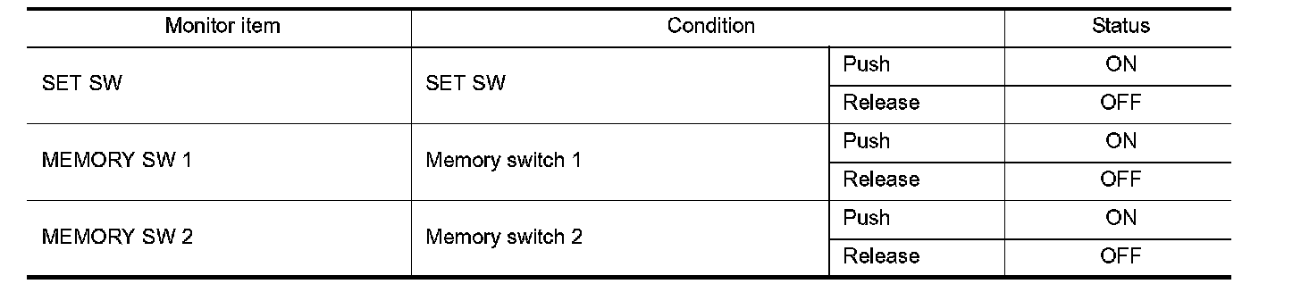 3. Check seat memory switch signal under the following conditions.