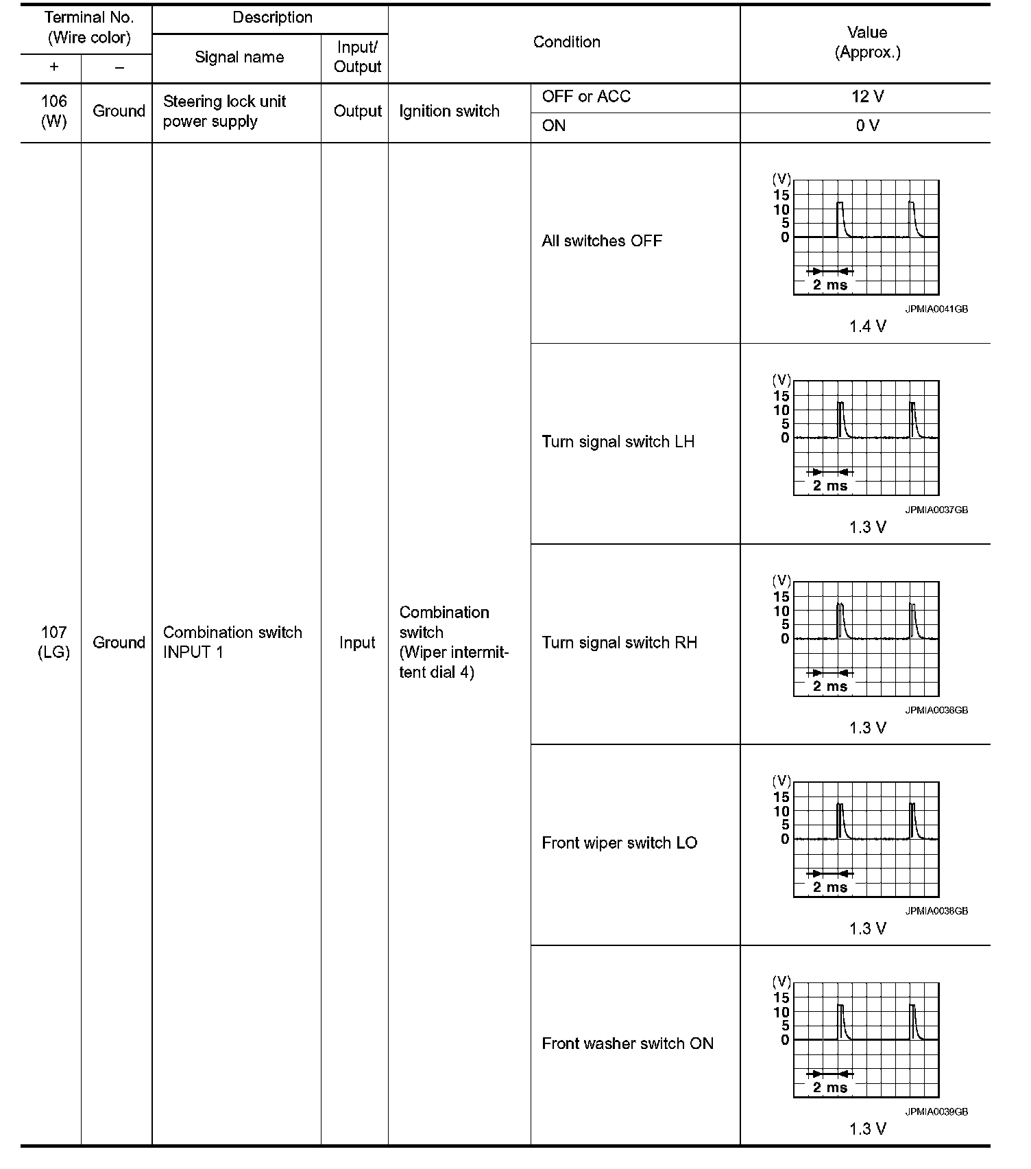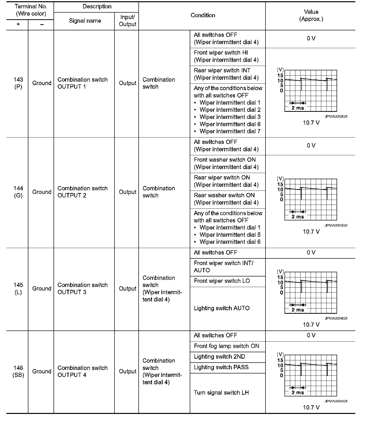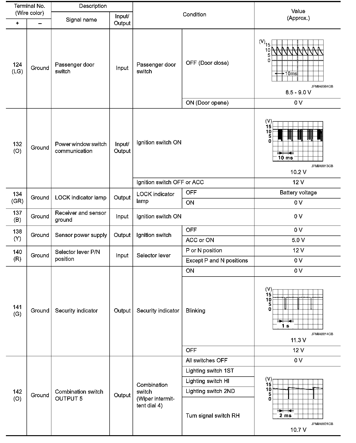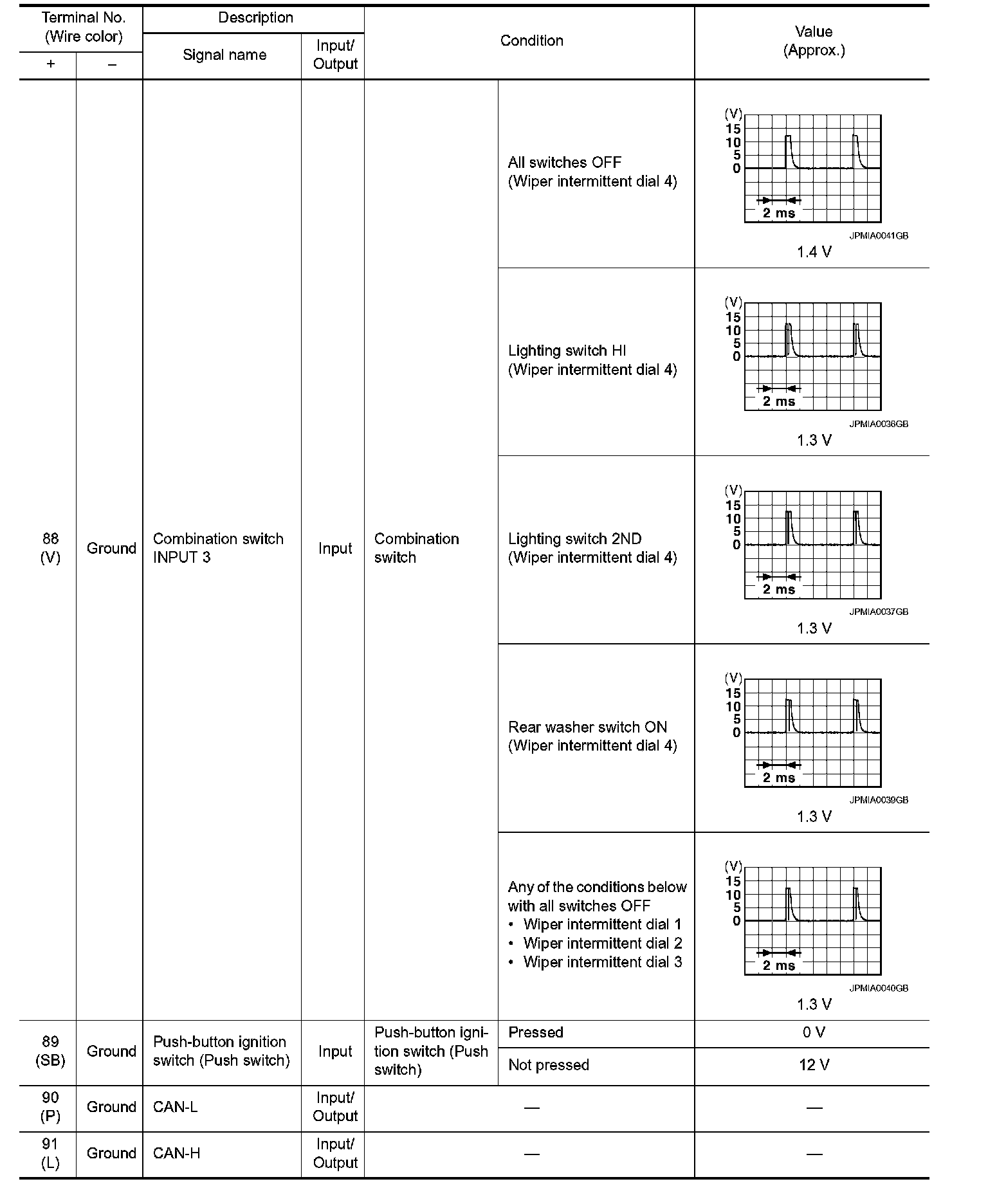 Pinout Values and Diagnostic Parameters