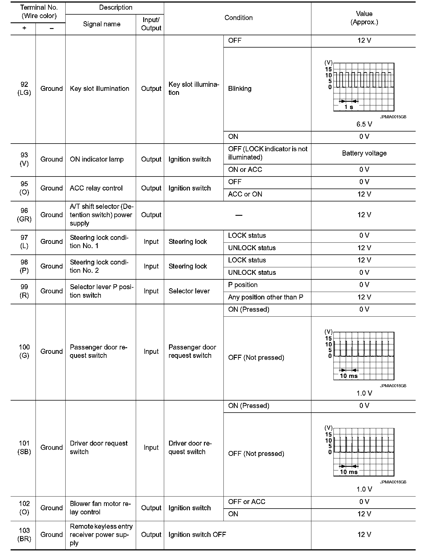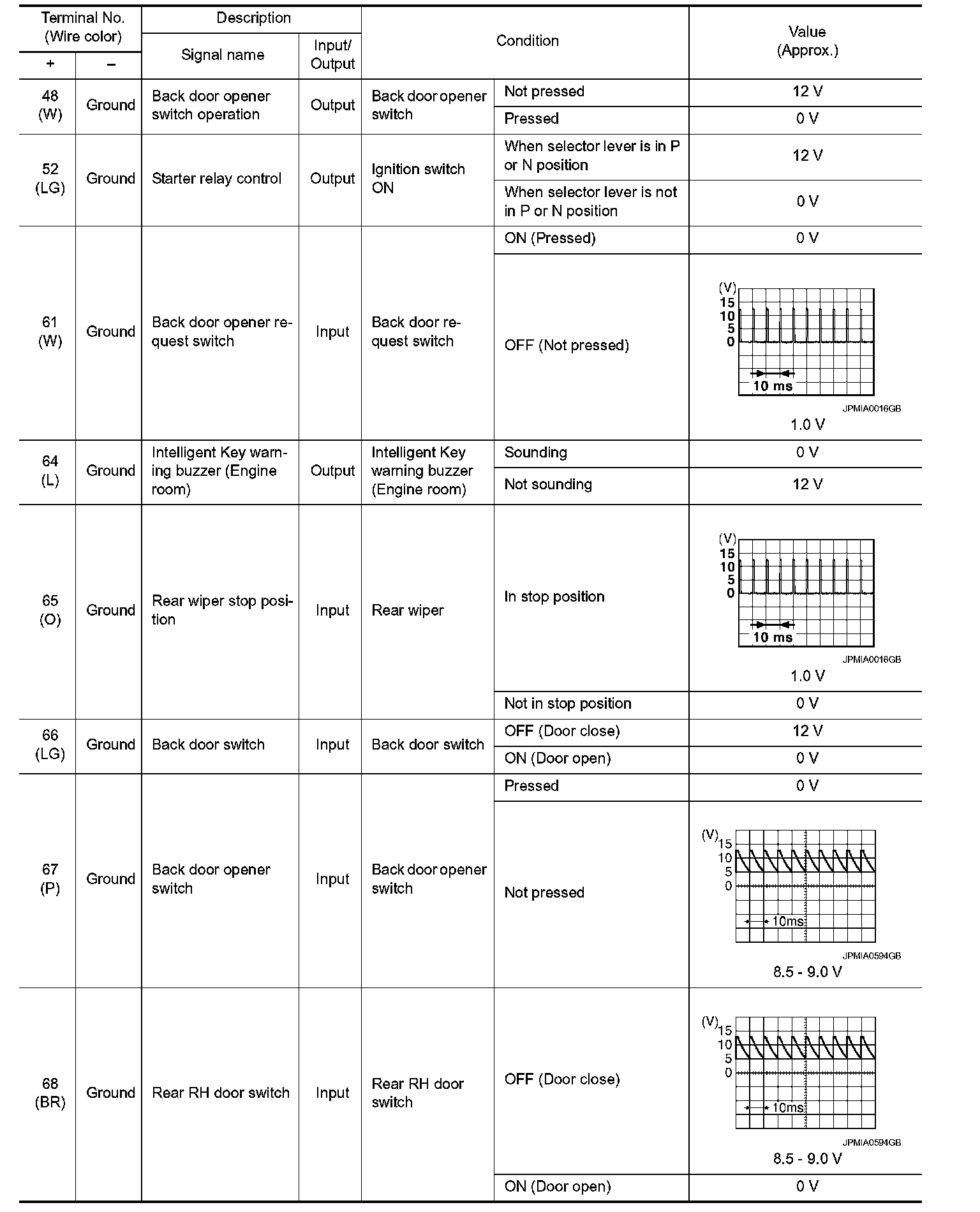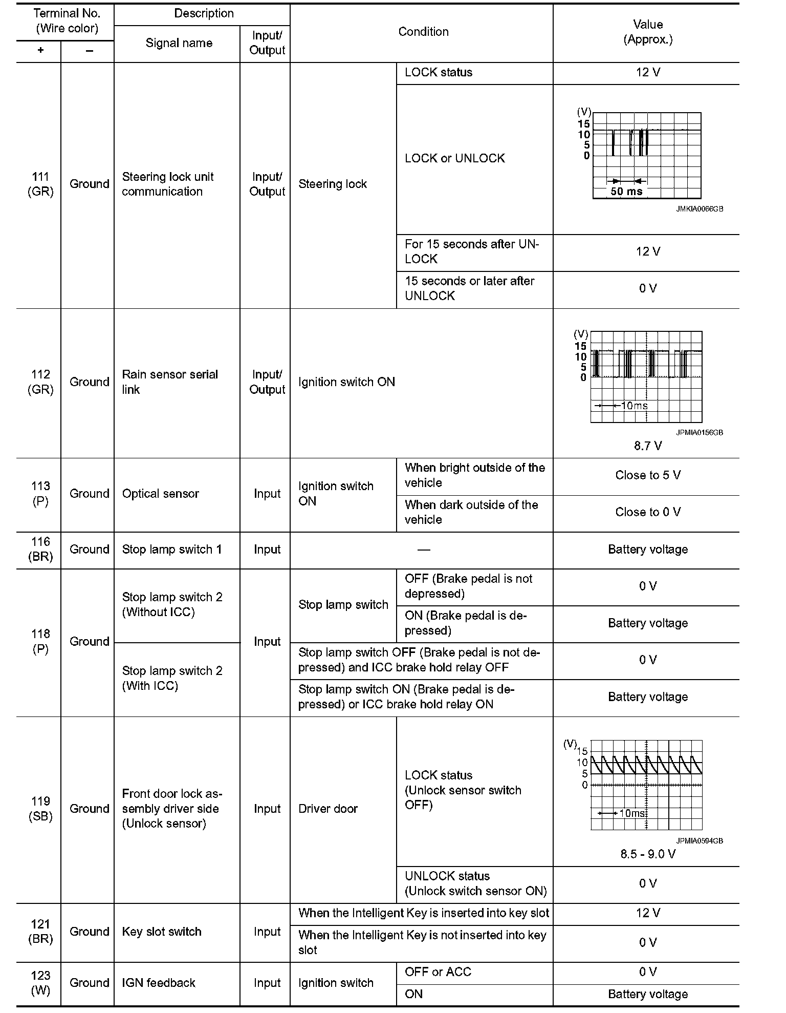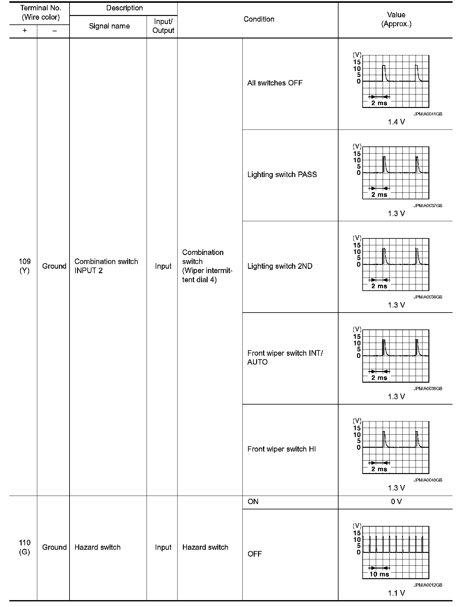 Pinout Values and Diagnostic Parameters