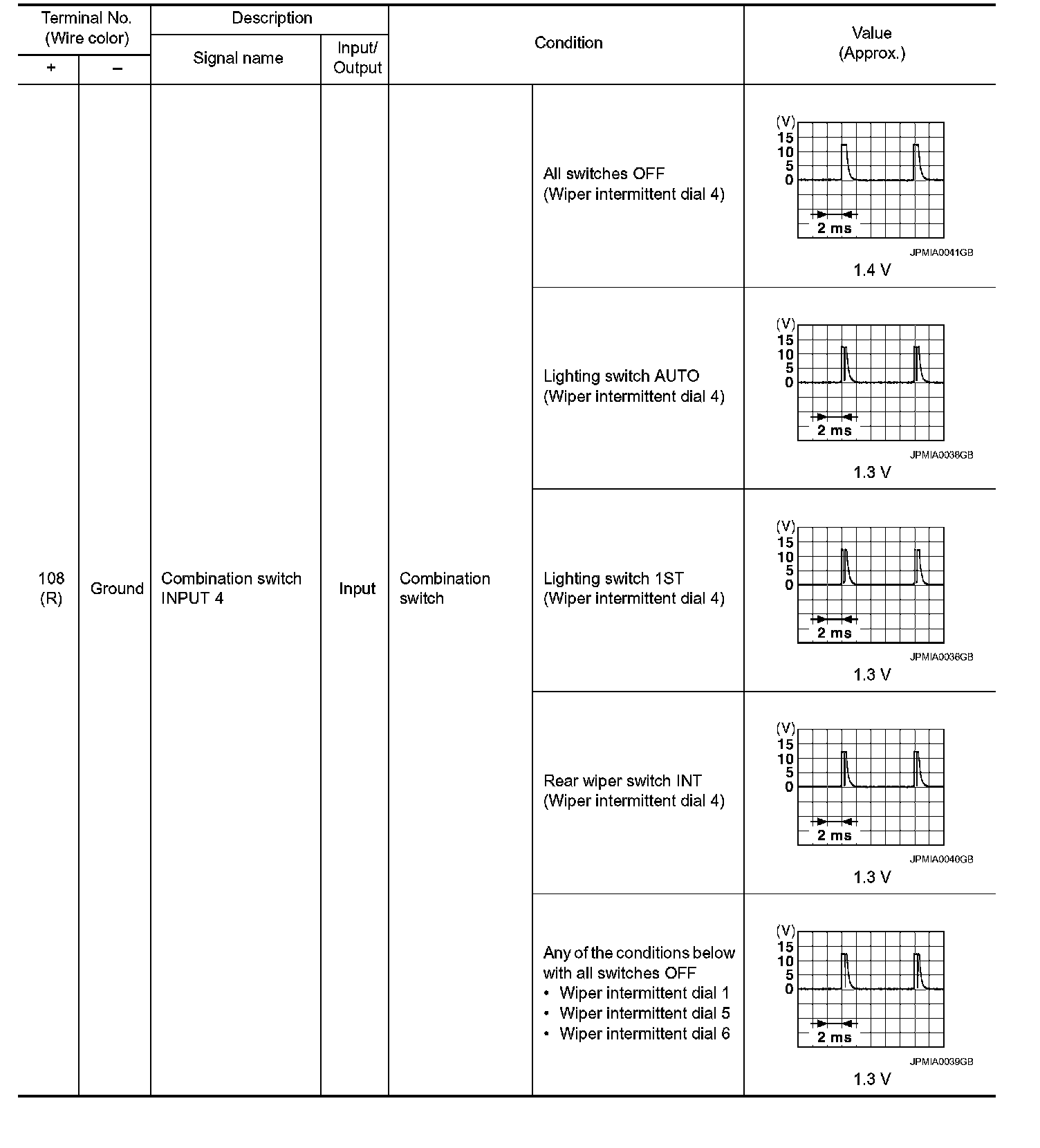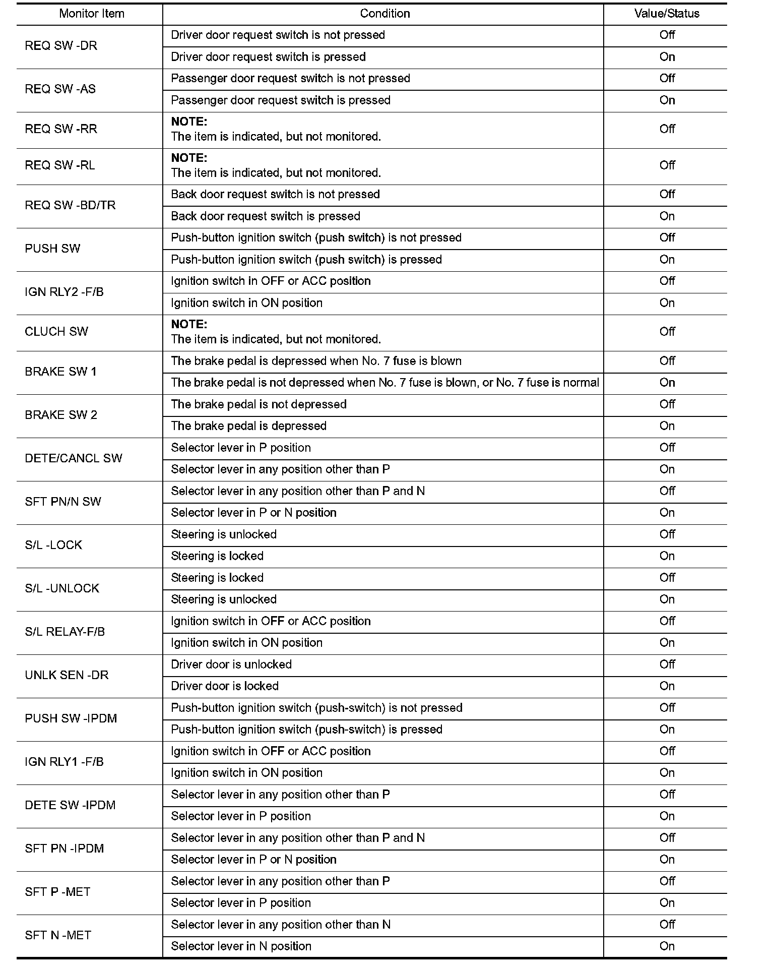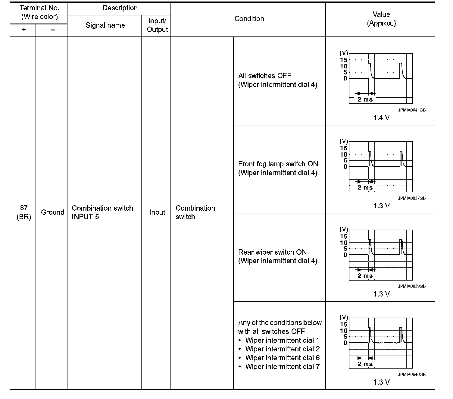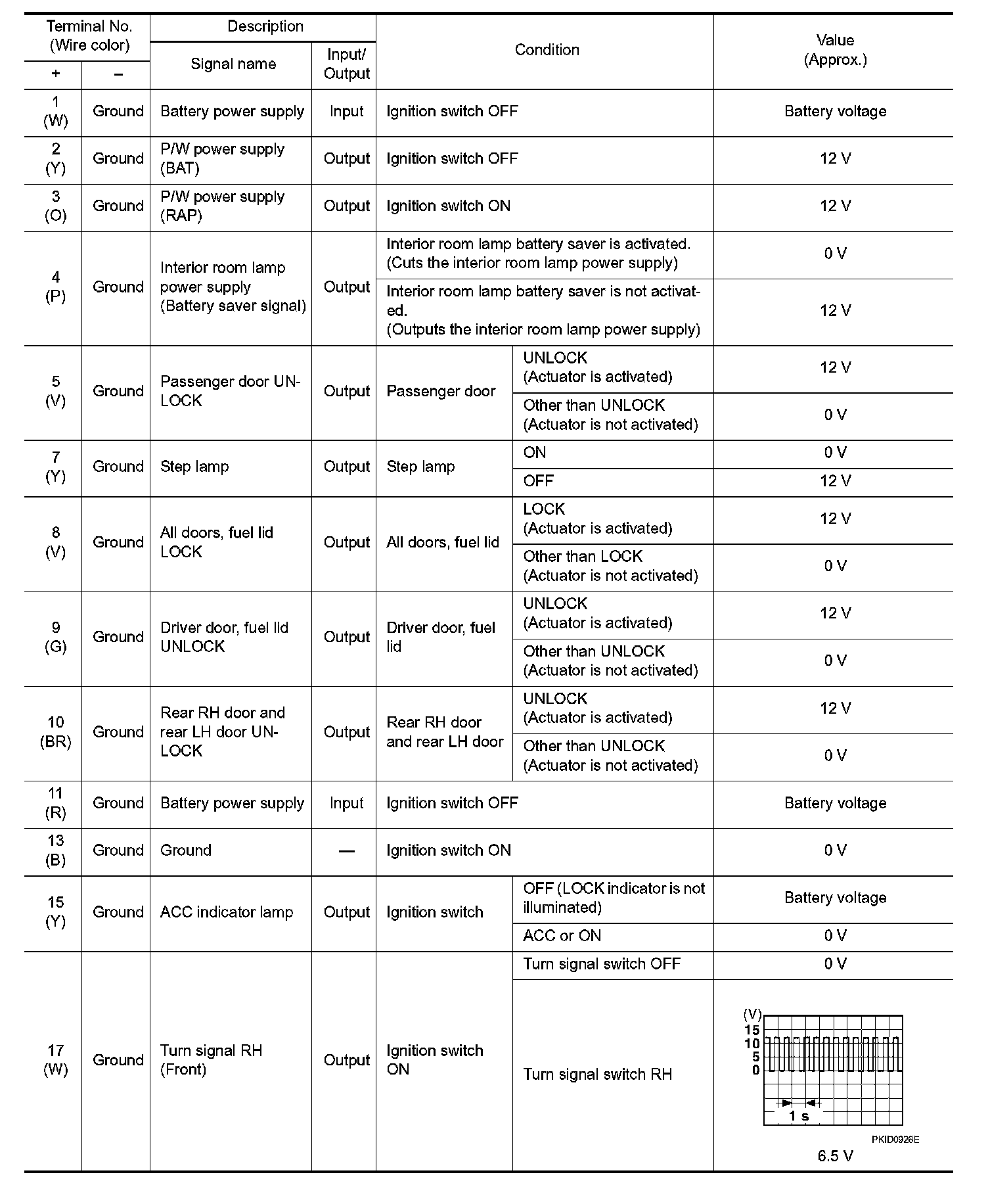 Pinout Values and Diagnostic Parameters