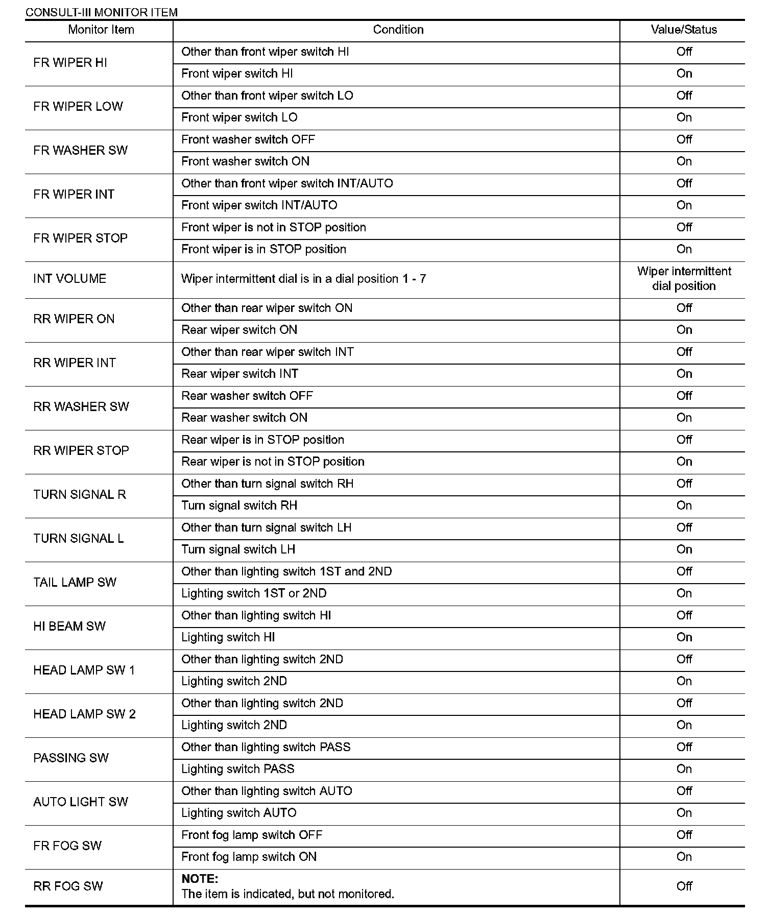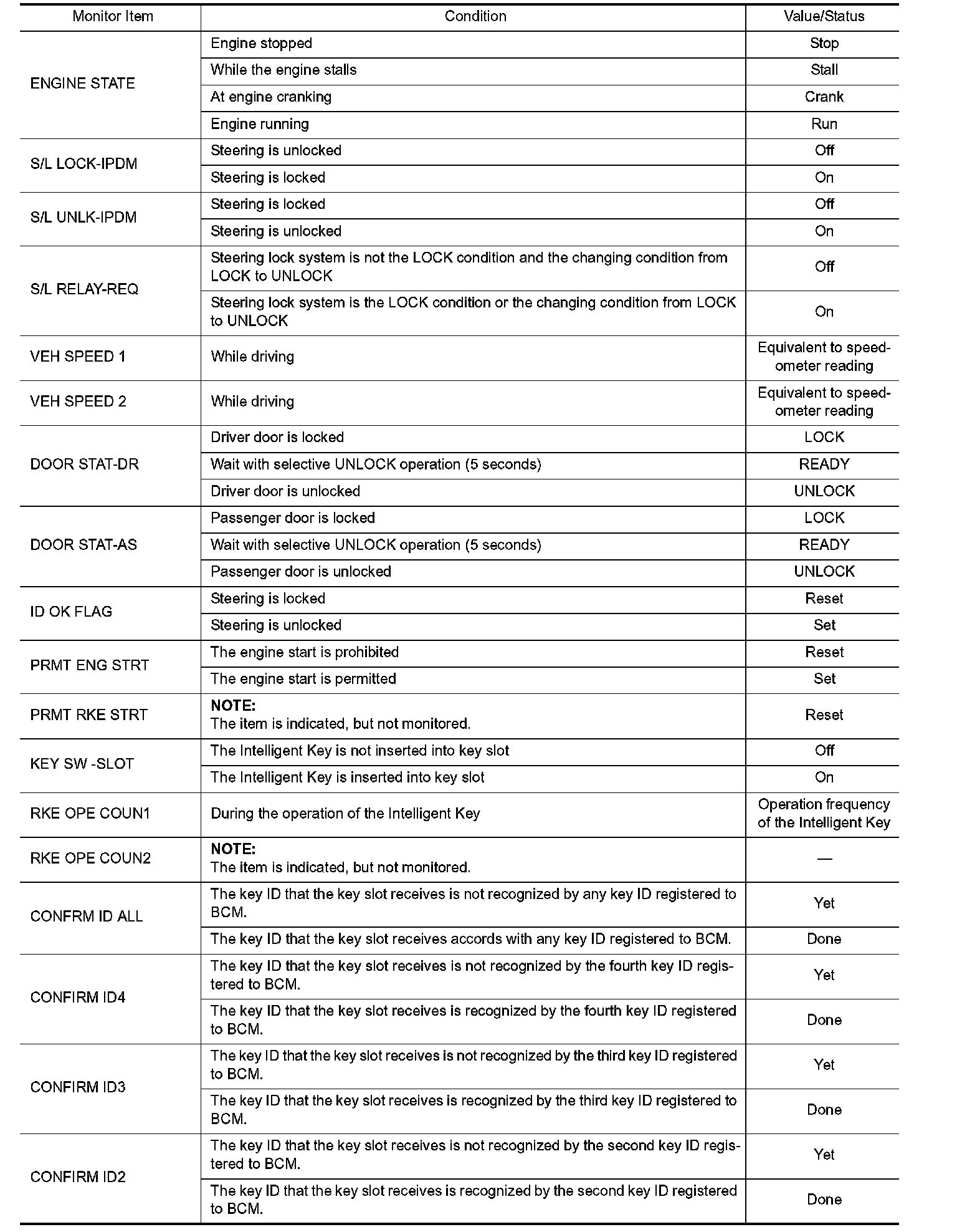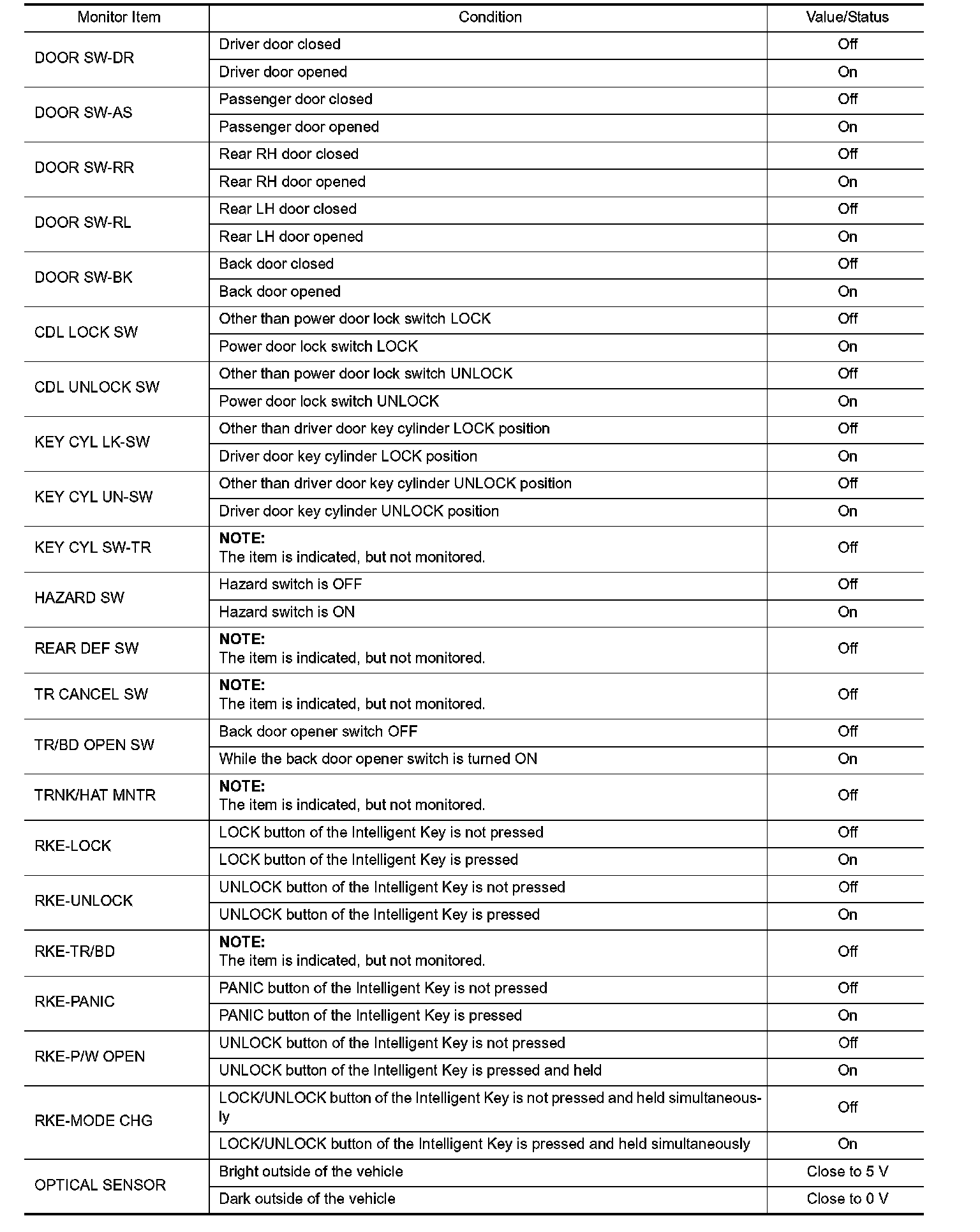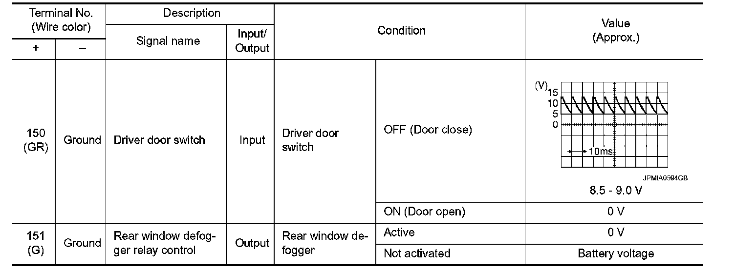 Pinout Values and Diagnostic Parameters