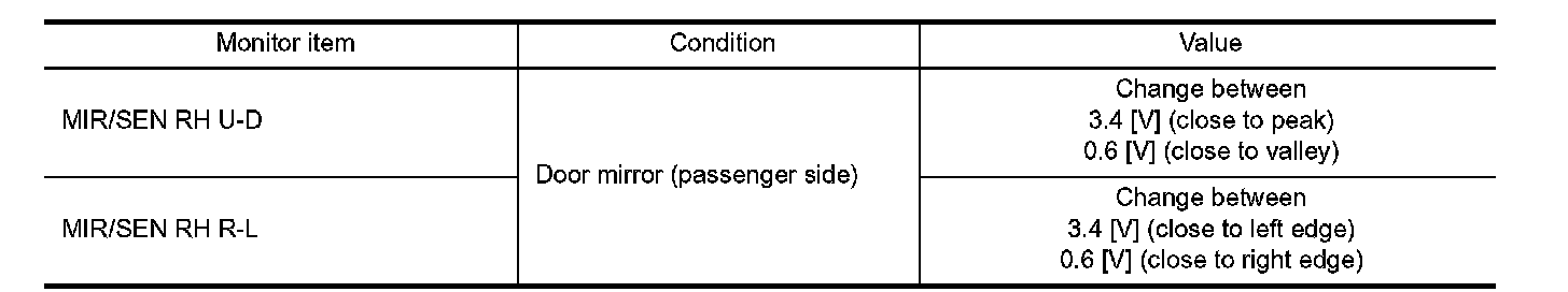 3. Check the mirror sensor (passenger side) signal under the following conditions.