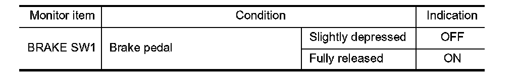 3. Check "BRAKE SW1" indication under the following conditions.