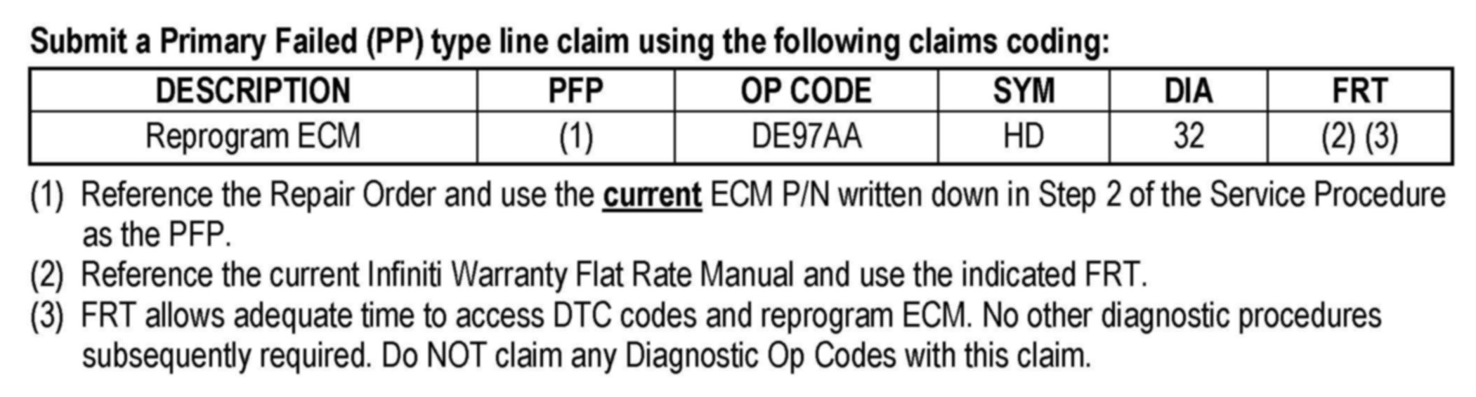 ^ Diagnosis and repairs beyond ECM reprogramming are not covered by this bulletin.