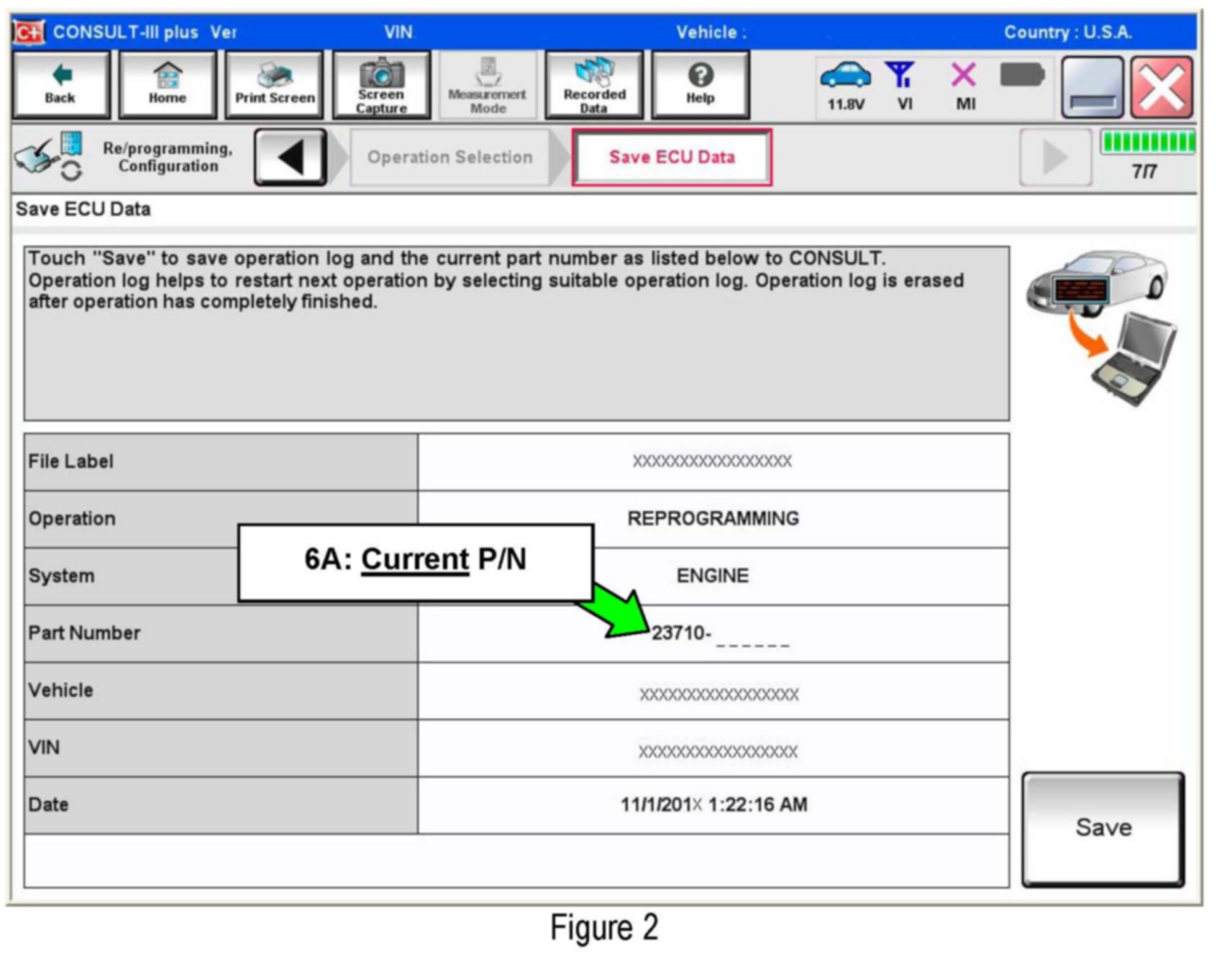 1. Connect the CONSULT PC to the vehicle to begin the reprogramming procedure.