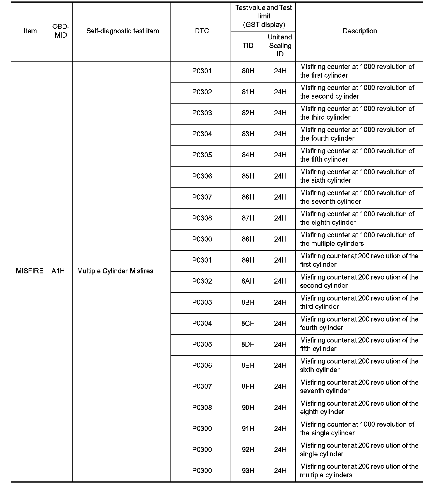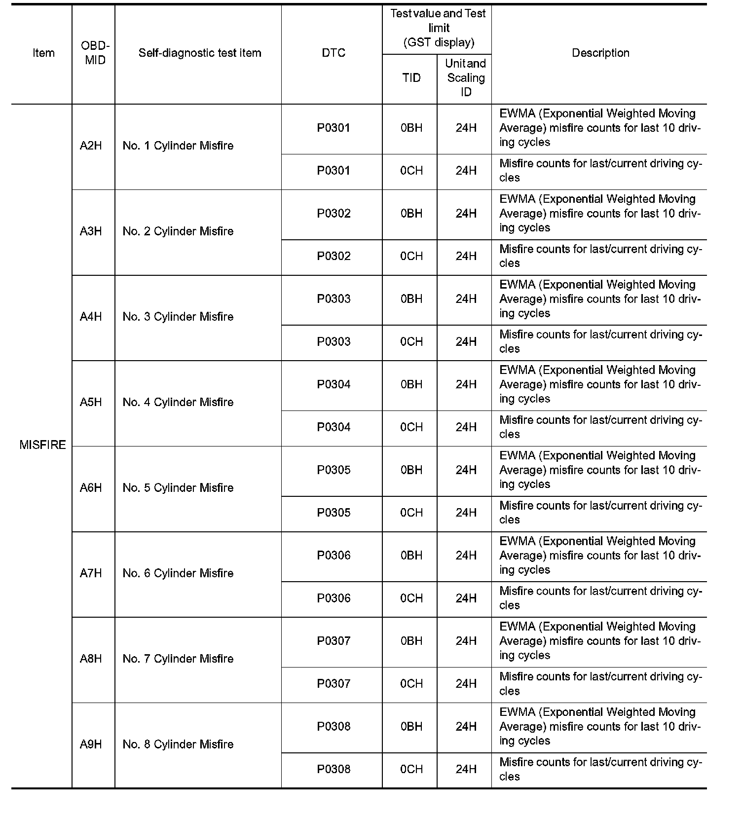 These data (test value and test limit) are specified by On Board Monitor ID (OBDMID), Test ID (TID), Unit and