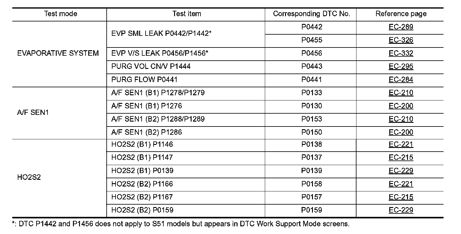 Regarding items of DTC and 1st trip DTC, Testing and Inspection.