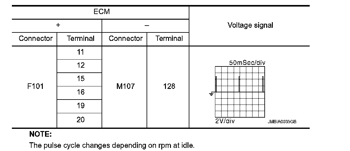 2. Read the voltage signal between ECM harness connector terminals under the following conditions with an oscilloscope.