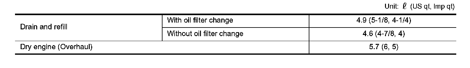ENGINE OIL CAPACITY (APPROXIMATELY)