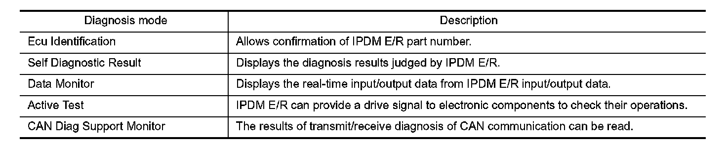 CONSULT-III performs the following functions via CAN communication with IPDM E/R.