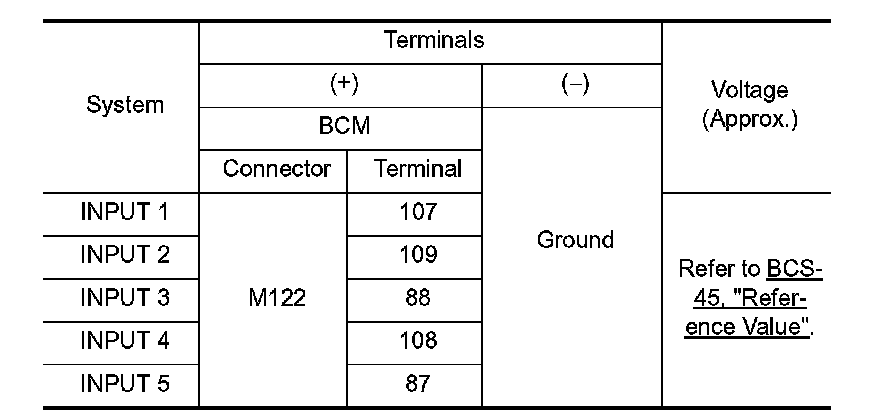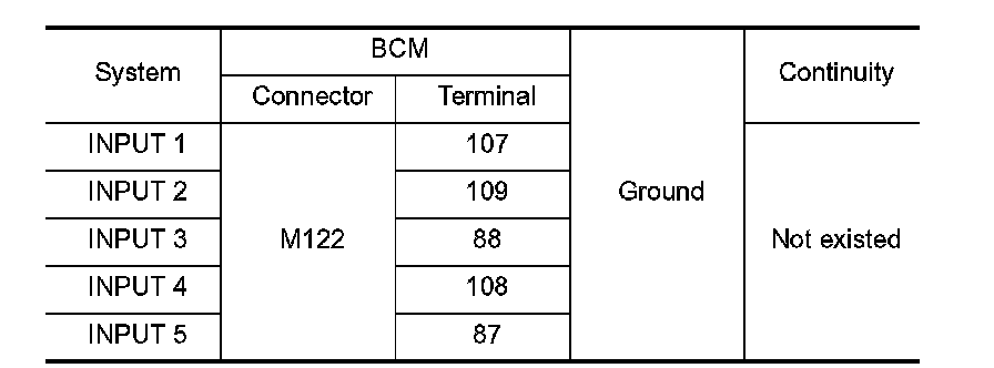 2.CHECK INPUT 1 - 5 SYSTEM CIRCUIT FOR SHORT