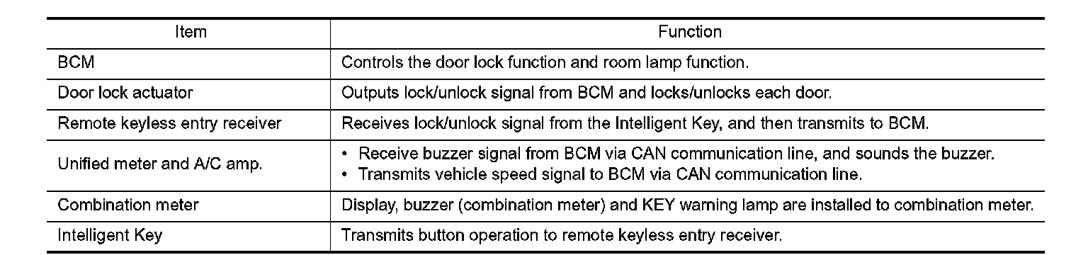 REMOTE KEYLESS ENTRY FUNCTION : Component Description