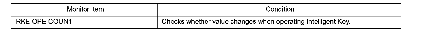 Check remote keyless entry receiver ("RKE OPE COUN1") in Data Monitor mode using CONSULT-III.