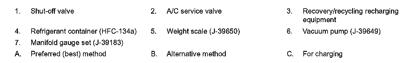 Remove HFC-134a (R-134a) from A/C system using certified service equipment meeting requirements of SAE J-2210 [HFC-134a (R-134a) recycling equipment] or J-2209 [HFC-134a (R-134a) recovery equipment]. Ventilate work area before resuming service if accidental system discharge occurs. Additional health and safety information may be obtained from refrigerant and lubricant manufacturers.