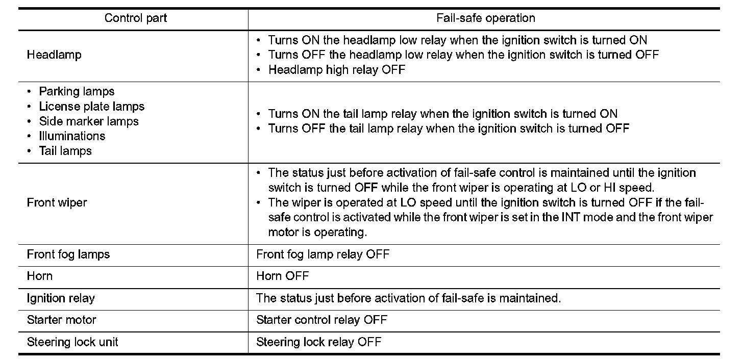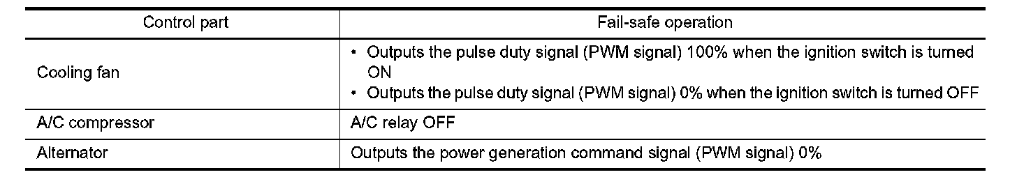 When CAN communication with ECM and BCM is impossible, IPDM E/R performs fail-safe control. After CAN communication recovers normally, it also returns to normal control.