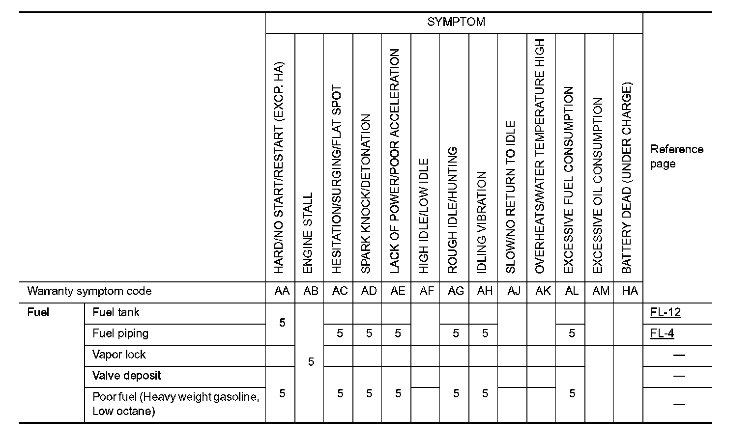 Symptom Table - Basic Engine Control System (Part 2):