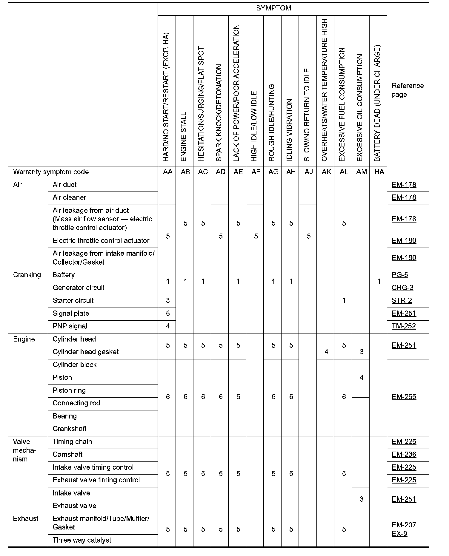 ENGINE CONTROL SYSTEM SYMPTOMS