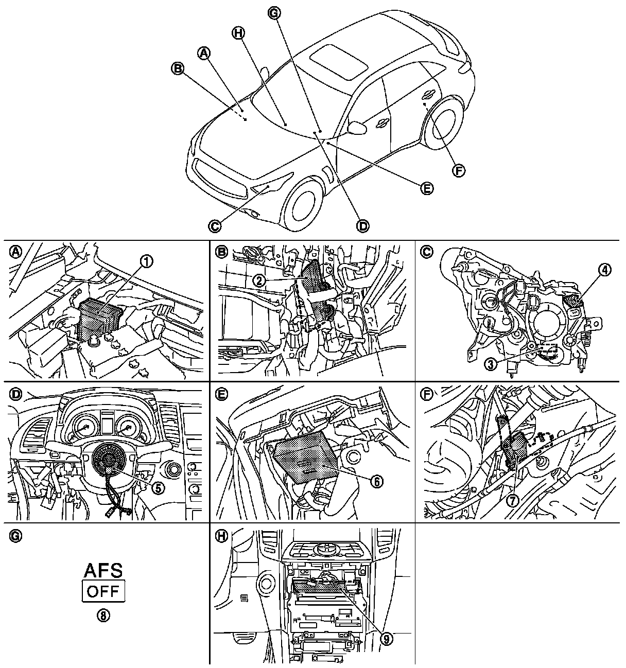 Headlamp Alignment Control Module: Locations