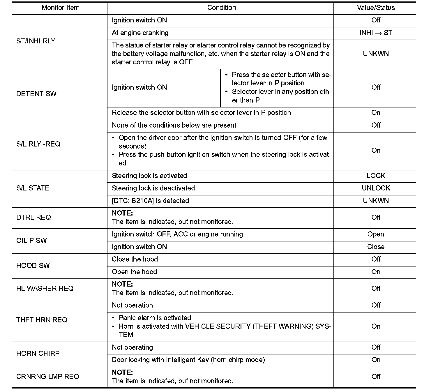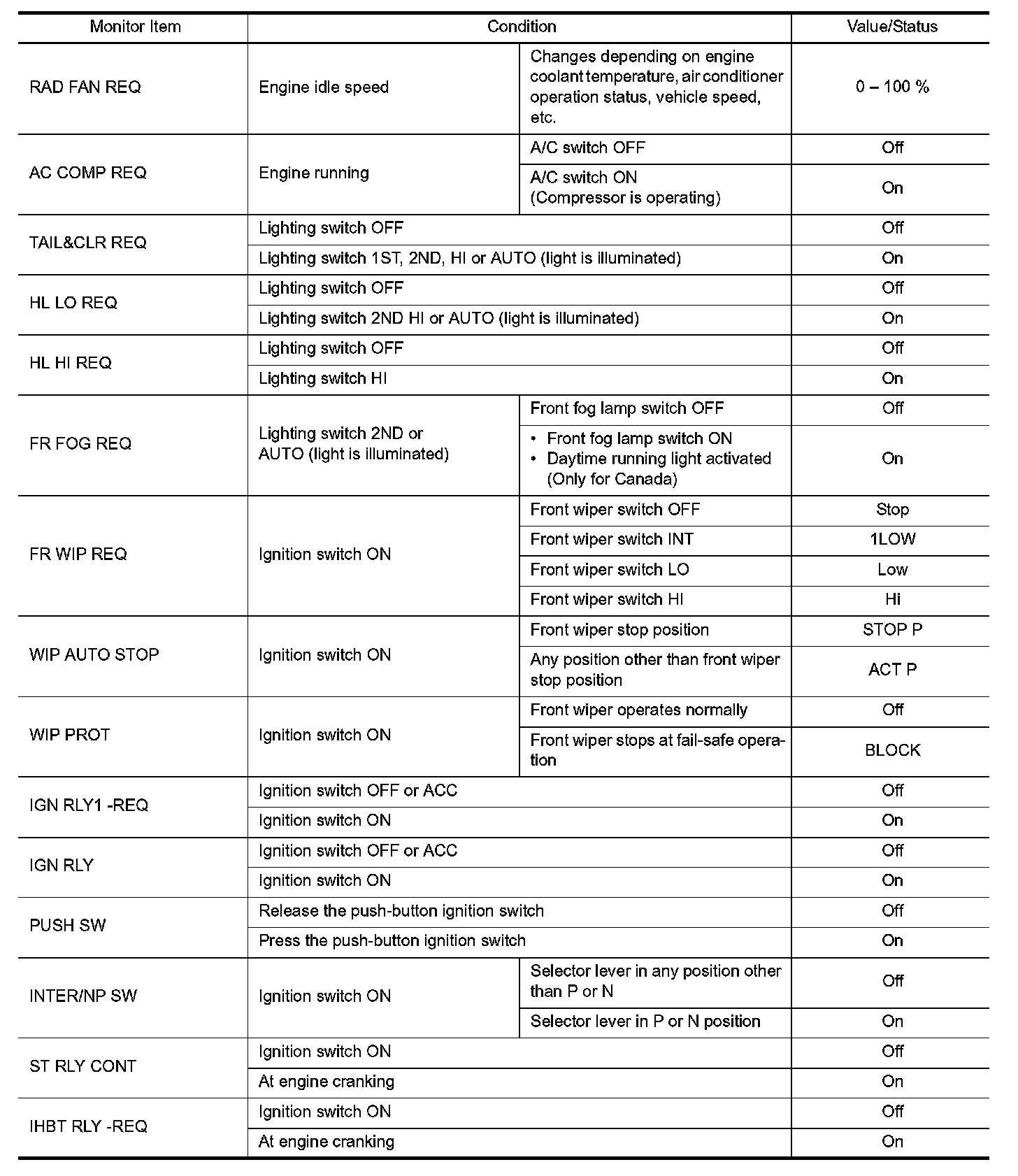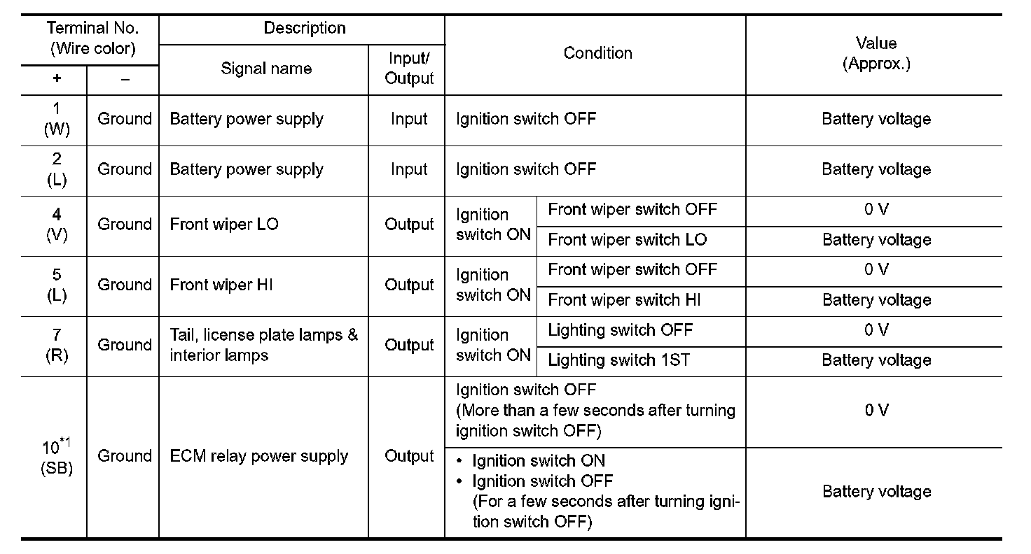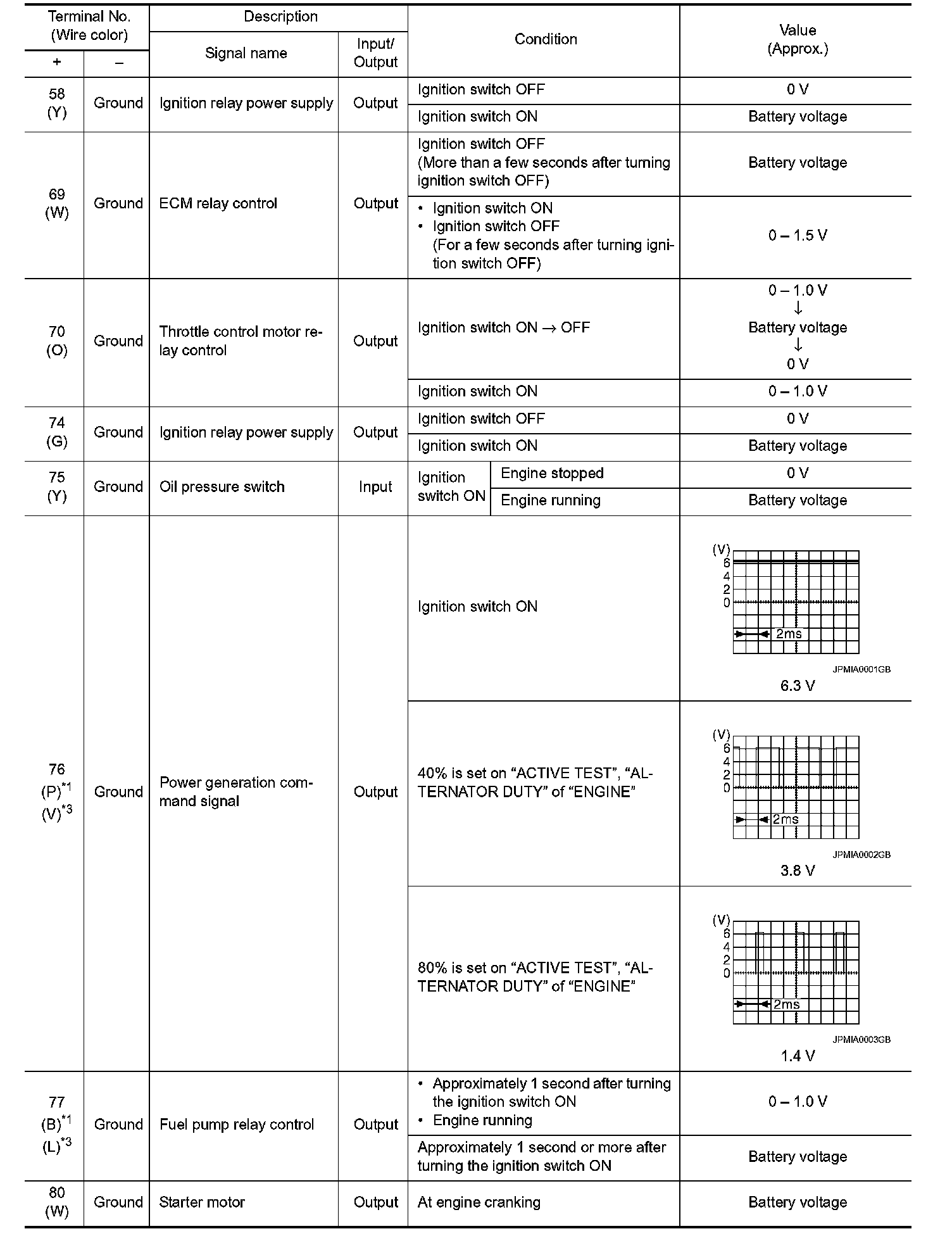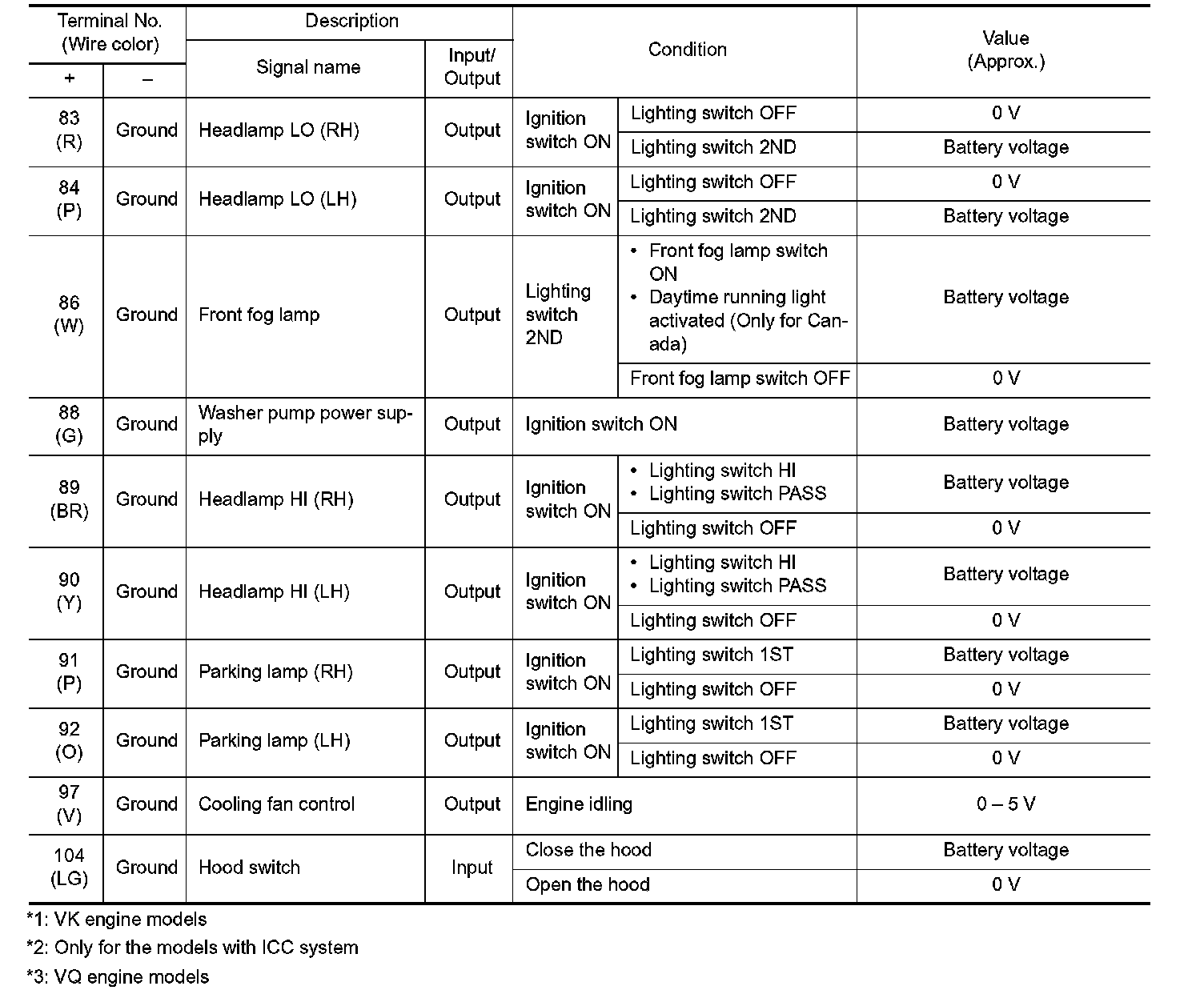 Pinout Values and Diagnostic Parameters