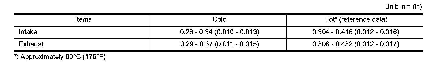 VALVE CLEARANCE